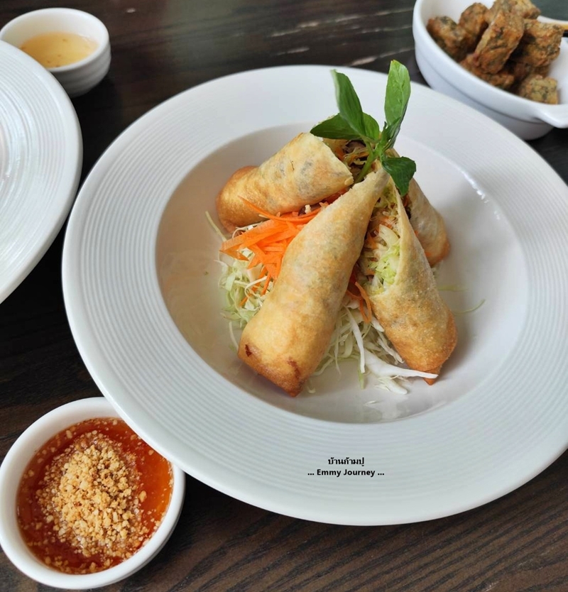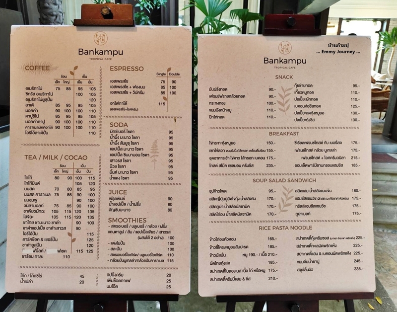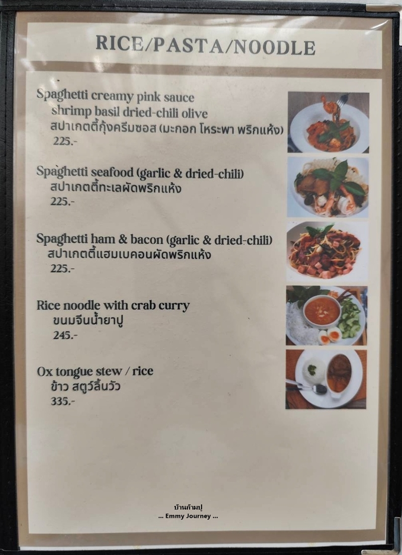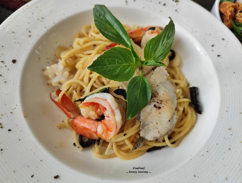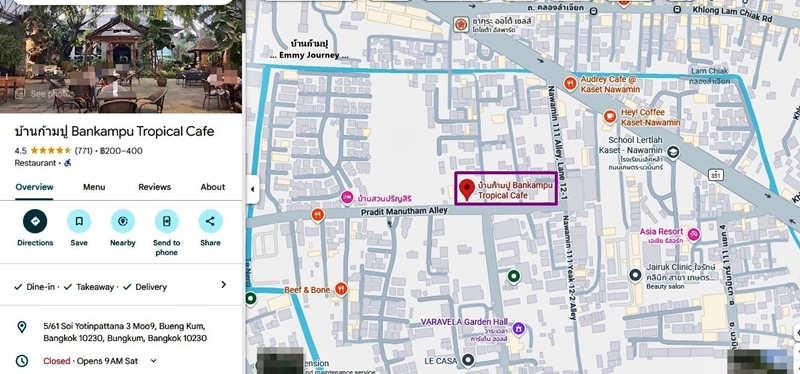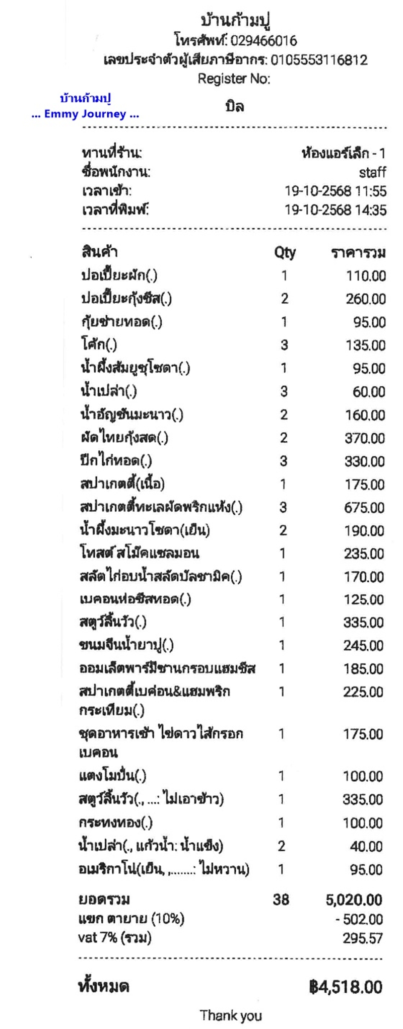 ร้านบ้านก้ามปู (Bankampu Tropical Gallery & Cafe) มาทานร้านนี้เพราะนัดเจอกับกลุ่มเพื่อนสมัยมัธยมสนิทกันจนถึงปัจจุบัน อีกทั้งร้านนี้เป็นร้านของแม่เพื่อนด้วย ร้านตั้งอยู่ที่ซอยโยธินพัฒนา 3 ( ซอยนวมินทร์ 111) ถนนประดิษฐ์มณูธรรม (เลียบทางด่วนเอกมัยรามอินทรา) กรุงเทพมหานคร เปิดให้บริการทุกวันตั้งแต่เวลา 9.00-18.30 น. มีที่จอดรถยนต์หน้าร้าน ที่นั่งมีโซน Outdoor และมีห้องแอร์ให้บริการร่มรื่นเป็นธรรมชาติมากขอบคุณภาพแผนที่ร้านจาก Google Mapภายในร้านกว้างขวางมาก ต้นไม้เต็มไปหมดทุกมุม ที่ร้านขายต้นไม้ด้วยค่ะ สนใจต้นไหนสอบถามที่ร้านได้มีเรือนจัดงานแต่งงานได้ด้วยนะรถเก่าก็มีมุมนี้คือโซนห้องแอร์ที่เพื่อนเราจองไว้ เรายังเดินชมร้านไม่ทั่วเลยค่ะ ร้านใหญ่ต้องใช้เวลาในการเดินชม กลุ่มเพื่อนที่ว่างมาสังสรรค์กัน ยังไม่ครบแก็งเลยจ้ายังขาดอีกหลายคนขนมเค้กก็น่าทานทั้งนั้นนกแก้วซันคอนูร์ ประจำร้านชื่อ ส้มจี๊ด ที่ร้านปล่อยบินอิสระ ต่อไปนี้จะเป็นการสั่งอาหารแบบใครอยากทานไรก็สั่ง สรุปกลายเป็นสั่งแล้วมาแบ่งกันชิม จะกินกันกี่จานก็สั่งมาเพิ่มตลอดจนกว่าจะอิ่ม ผัดไทยกุ้งสด 185 บาท รสชาติดีอยู่นะ ผัดได้ไม่เลี่ยนสปาเก็ตตี้ทะเลผัดพริกแห้ง 225 บาท อร่อยเลย เผ็ด เค็ม กำลังดี ผัดน้ำมันไม่เยิ้มปีกไก่ทอด 110 บาท อร่อยดี สลัดไก่อบ 170 บาท รสชาติจืด น้ำสลัดเปรี้ยวนิดๆ ขนมปังกับแซลมอนรมควัน 235 บาทสปาเก็ตตี้เบคอนแฮมพริก 225 บาทปอเปี๊ยะกุ้งชีส 130 บาทอีกสักมุมกุยช่ายทอด 95 บาทปอเปี๊ยะผัก 110 บาทอีกสักรูปสปาเก็ตตี้เนื้อ 175 บาท เพื่อนอุตส่าห์เหลือไว้ให้ชิมเพราะเรามัวแต่ไปเข้าห้องน้ำและเดินชมร้าน รสชาติดีอยู่เบคอนห่อชีสทอด 125 บาท อร่อยดีค่ะสตูว์ลิ้นวัวเสิร์ฟพร้อมข้าว 335 บาท รสชาติดีเกินความคาดหมาย อร่อยเลยขนมจีนน้ำยาปู 245 บาทออมเล็ตพาร์มีซานแฮมชีส 185 บาทชุดอาหารเช้า ไข่ดาว ไส้กรอก เบคอน 175 บาท กะทงทอง 100 บาท จ่ายไปทั้งหมด 4,518 บาท หักส่วนลด 10% แล้ว (ราคาอาหาร ณ เดือนตุลาคม 2568) รายการอาหาร