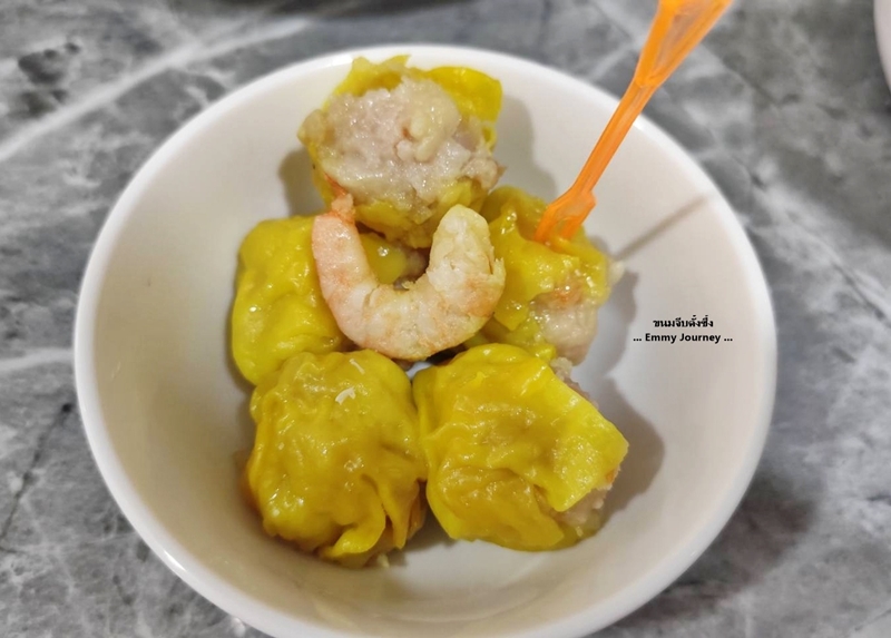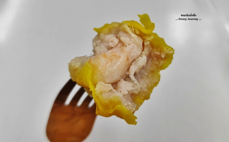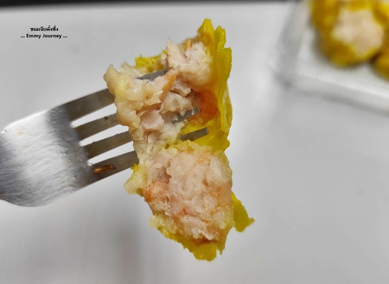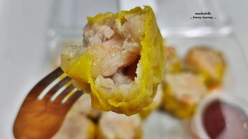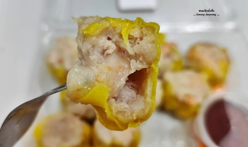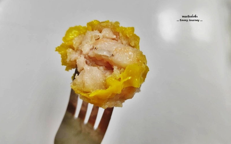 ลองแกะดูในขนมจีบ 1 ลูก เขาใส่กุ้งมา 1 ตัวทุกลูกจริงๆ นะ เราชอบทานแบบไม่ใส่จิ๊กโฉ่ว ไม่ใส่กระเทียมเจียว
