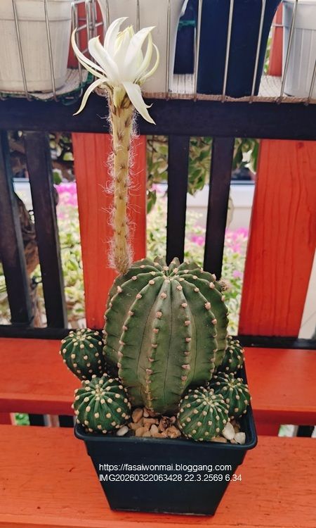 บันทึกน้องหนาม อิชินอปซิส ซับเดนูดาต้า (Echinopsis subdenudata) ดอกบานอีกแล้วจ้า (15.5.2568)