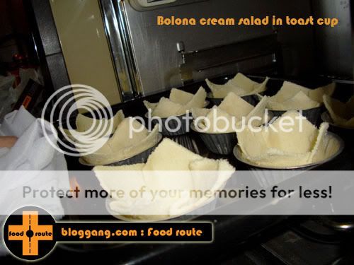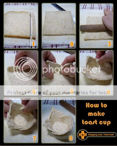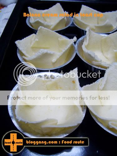 ลงมือลงไม้ - กลิ้งไม้คลึงแป้งลงบนแผ่นขนมปังจนแบนทั่วกัน - ทาเนยบางๆ แล้วพับแผ่นขนมปังตามรูป ยัดลงในถ้วยอะลูมิเนียม