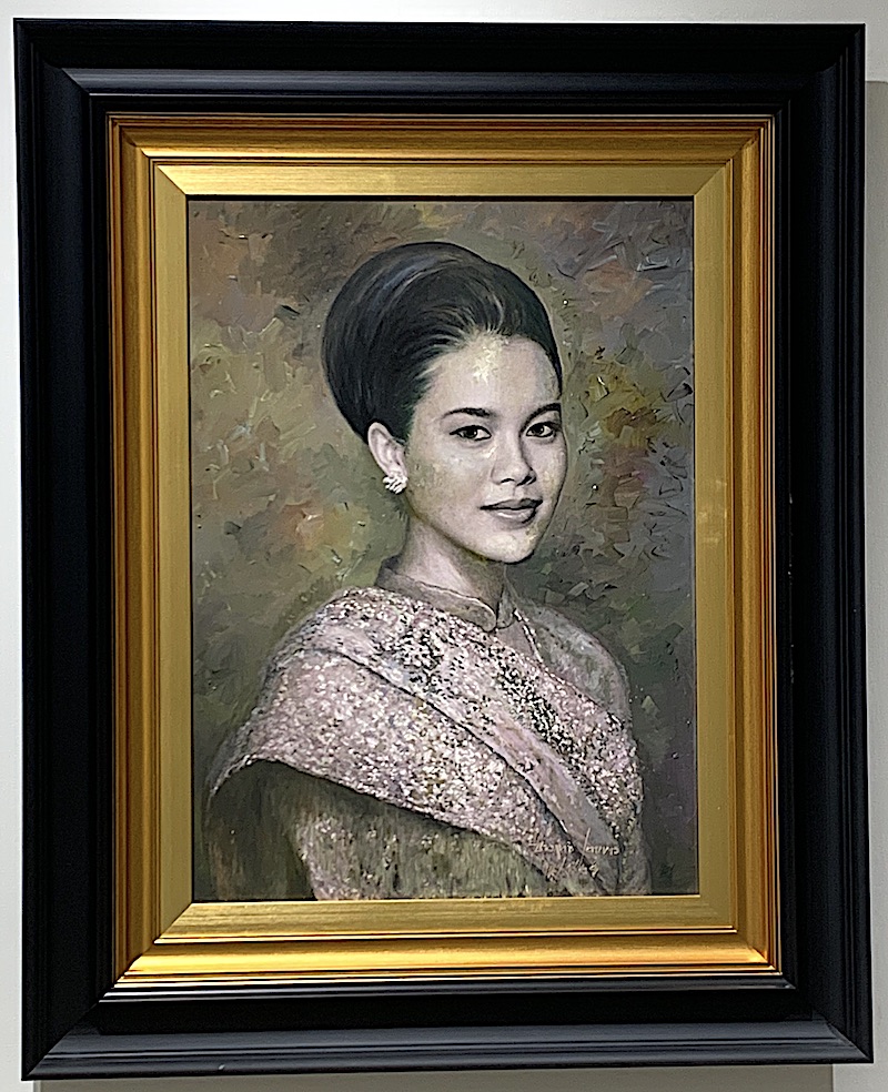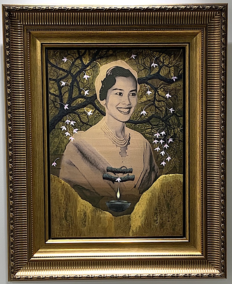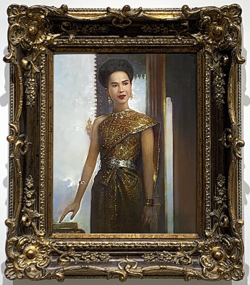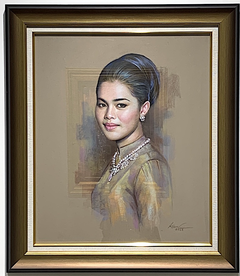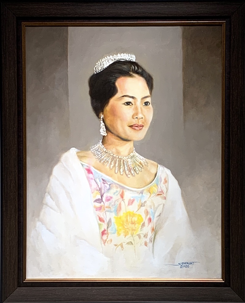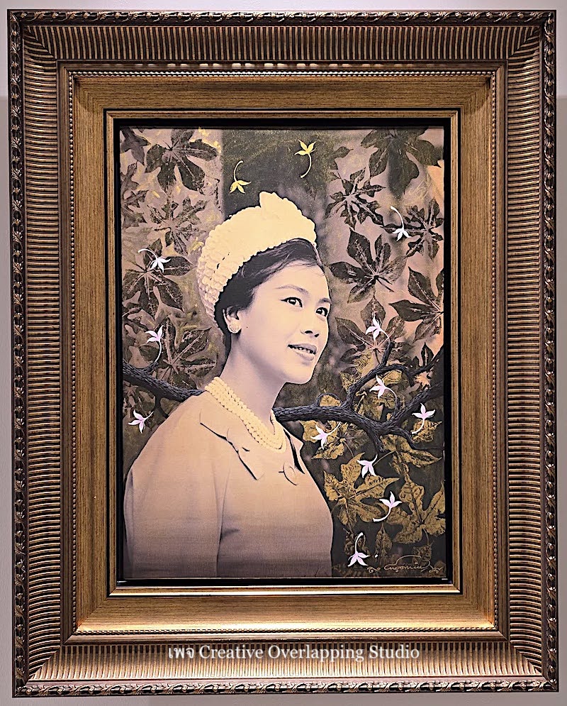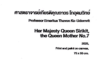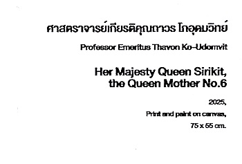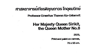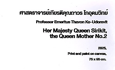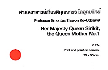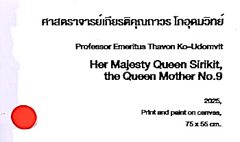 Her Majesty Queen Sirikit, the Queen Mother No.9 ศิลปิน ศาสตราจารย์เกียรติคุณถาวร โกอุดมวิทย์ พิมพ์และวาดสีบนผ้าใบ ขนาด ๗๕ x ๕๕ ซม.