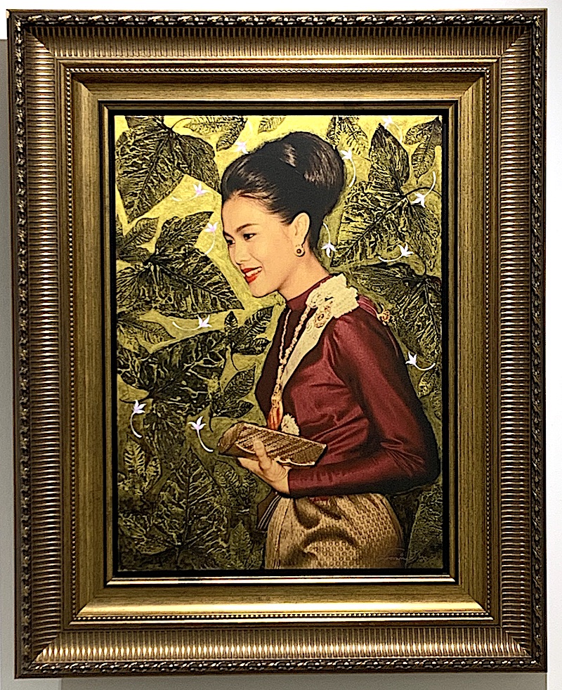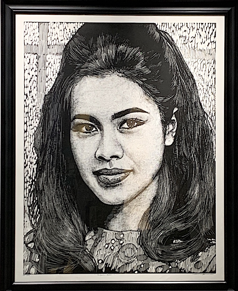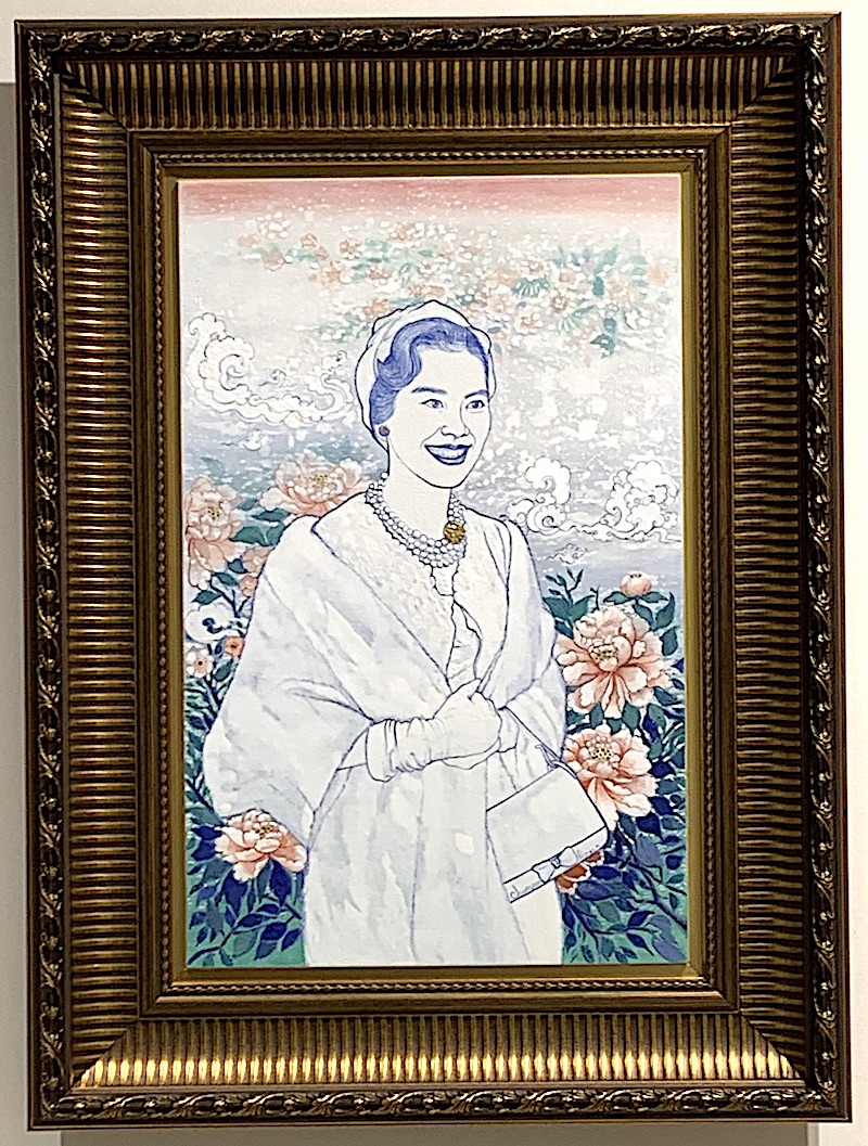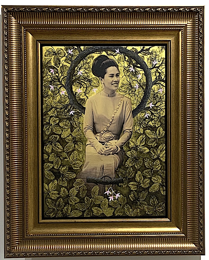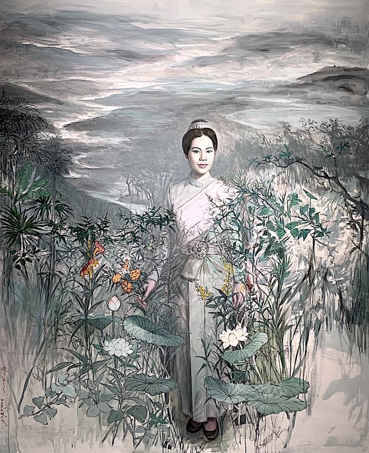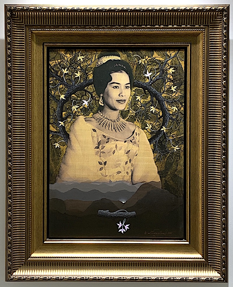 Her Majesty Queen Sirikit, the Queen Mother No.9 ศิลปิน ศาสตราจารย์เกียรติคุณถาวร โกอุดมวิทย์ พิมพ์และวาดสีบนผ้าใบ ขนาด ๗๕ x ๕๕ ซม.