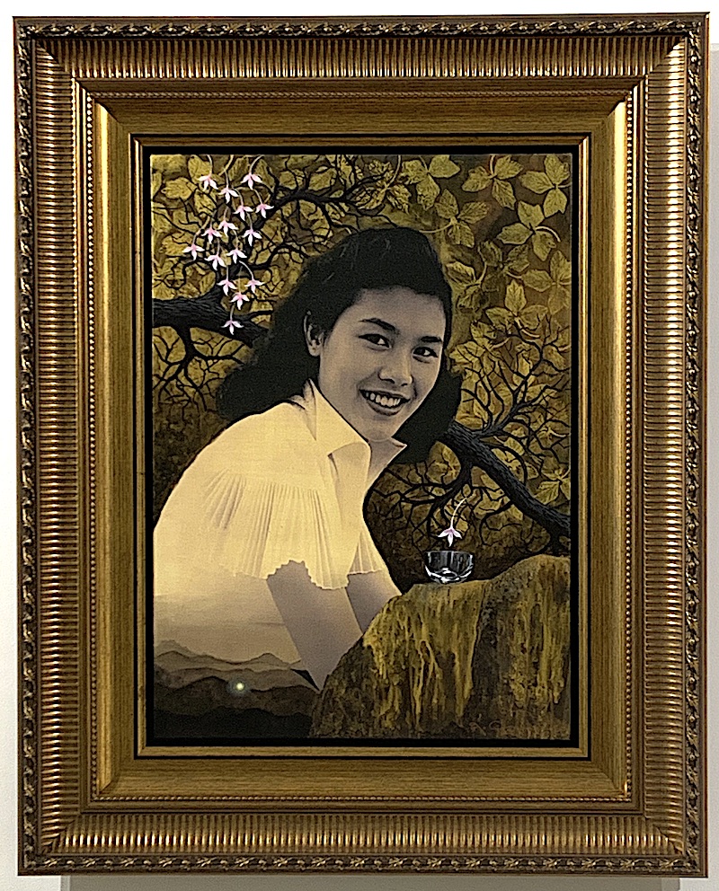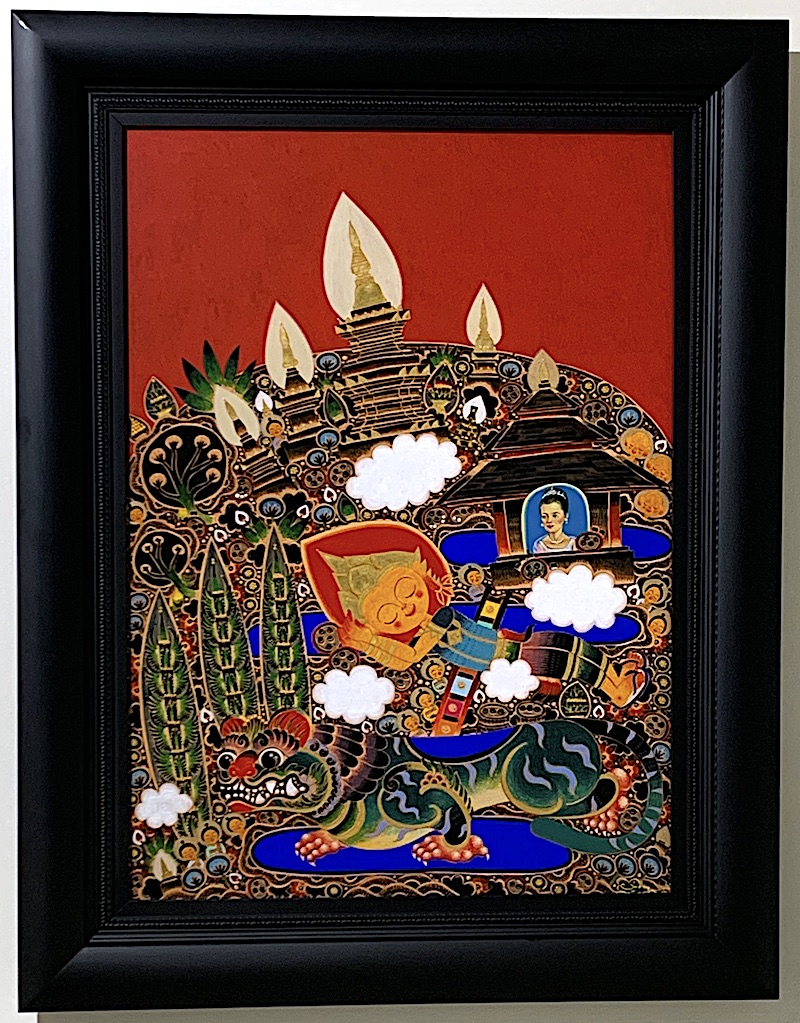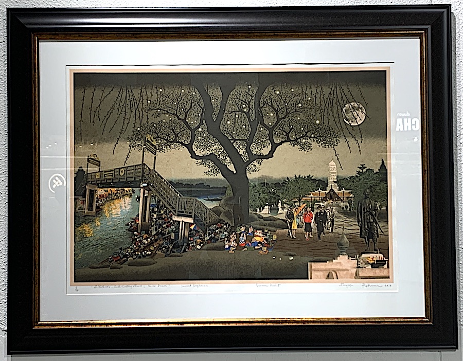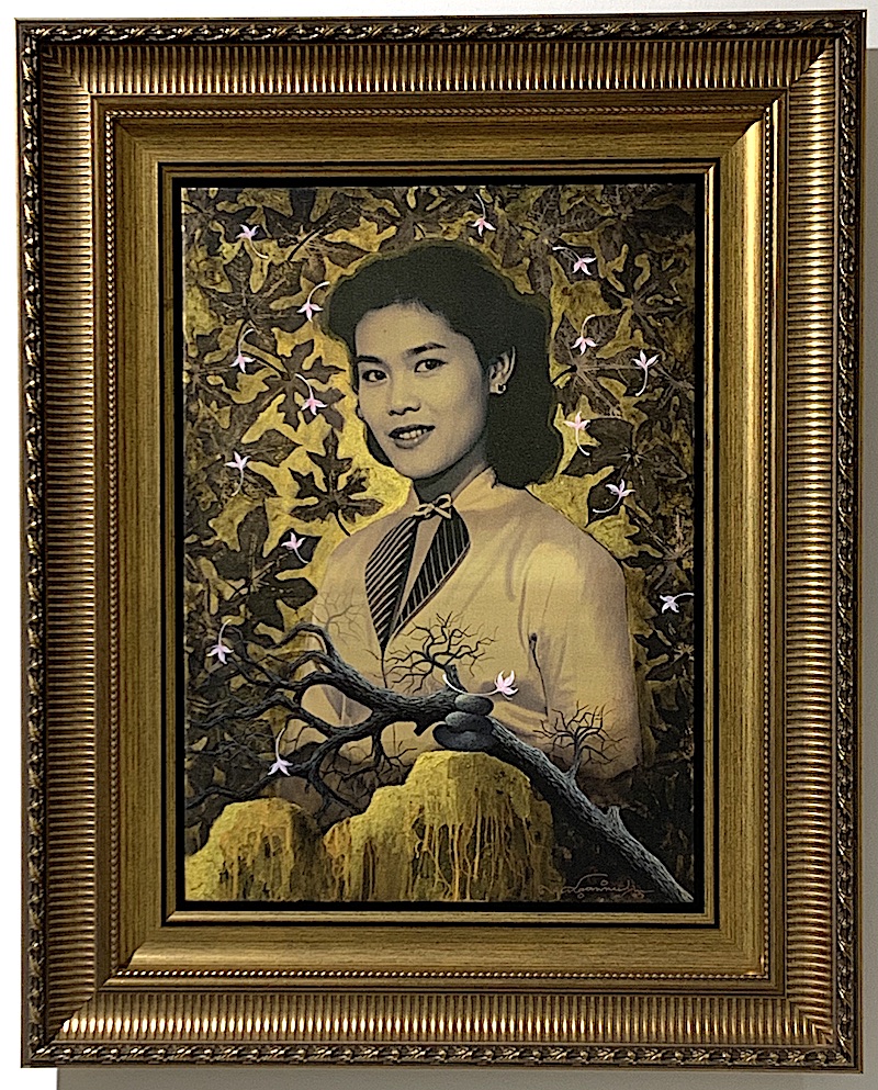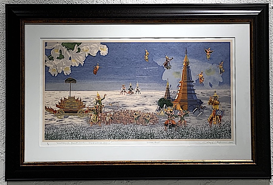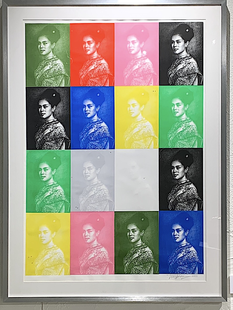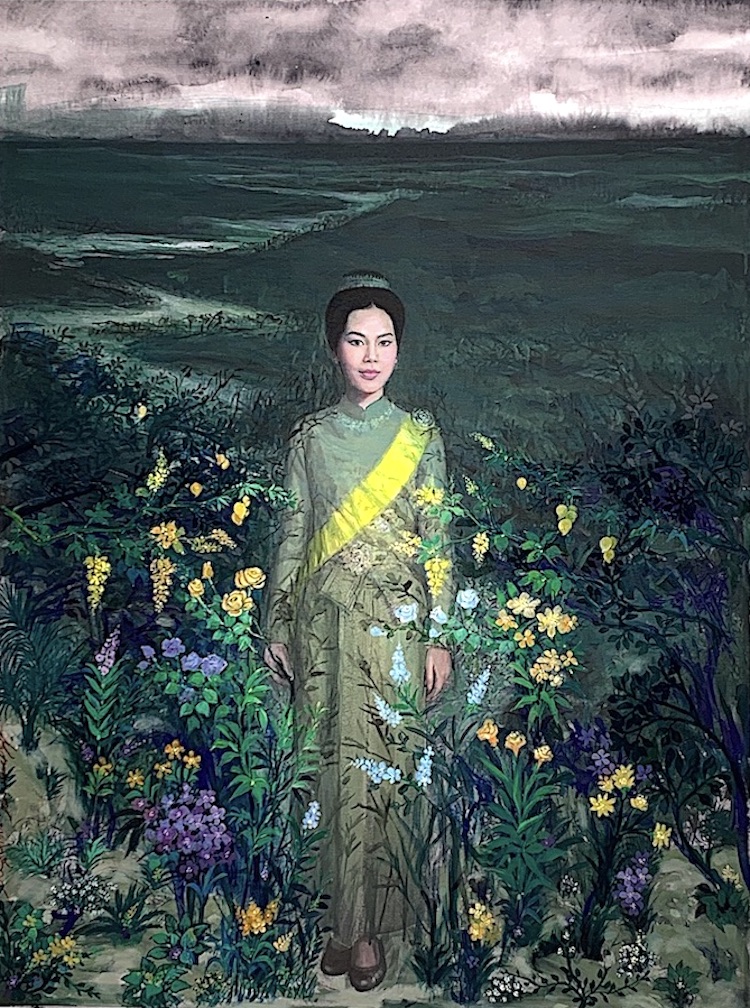 Her Majesty Queen Sirikit, the Queen Mother No.9 ศิลปิน ศาสตราจารย์เกียรติคุณถาวร โกอุดมวิทย์ พิมพ์และวาดสีบนผ้าใบ ขนาด ๗๕ x ๕๕ ซม.