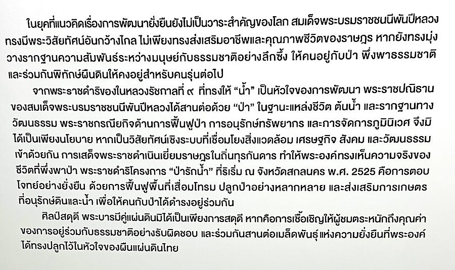 นิทรรศการ น้อมรำลึกในพระมหากรุณาธิคุณแห่ง สมเด็จพระบรมราชชนนีพันปีหลวง ครั้งนี้ มิได้นำเสนอเพียงความงดงามทางทัศนศิลป์ หากยังเปิดพื้นที่ให้ผู้ชมได้สัมผัส แก่นความคิด อันเป็นรากฐานของการสร้างคน สร้างโอกาส และการหล่อเลี้ยงผืนแผ่นดินด้วยคุณค่าของศิลปวัฒนธรรม โดยหวังให้แรงบันดาลใจแห่งพระเมตตาและพระวิสัยทัศน์อันกว้างไกล ได้ส่งต่อเป็นพลังบวกในหัวใจของผู้ชมทุกคน
