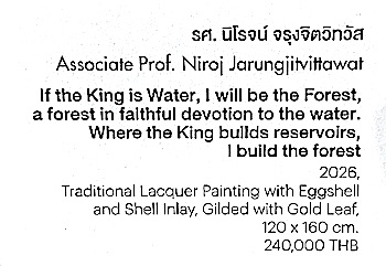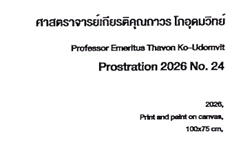 ผลงานชุดนี้ถ่ายทอด ความเคารพจากหัวใจ ผ่านท่วงทำนองของสี เส้น และชั้นเชิงแห่งวัสดุ สร้างบรรยากาศสงบ งดงาม และสง่างาม ชวนผู้ชมวางความเร่งรีบของชีวิตลงชั่วครู่ เพื่อพิจารณาความหมายของคำว่า กราบ และ สักการะ ในฐานะการระลึกถึงพระมหากรุณาธิคุณที่ยังคงสถิตในความทรงจำร่วมของสังคมไทย