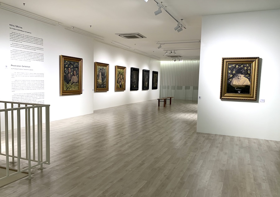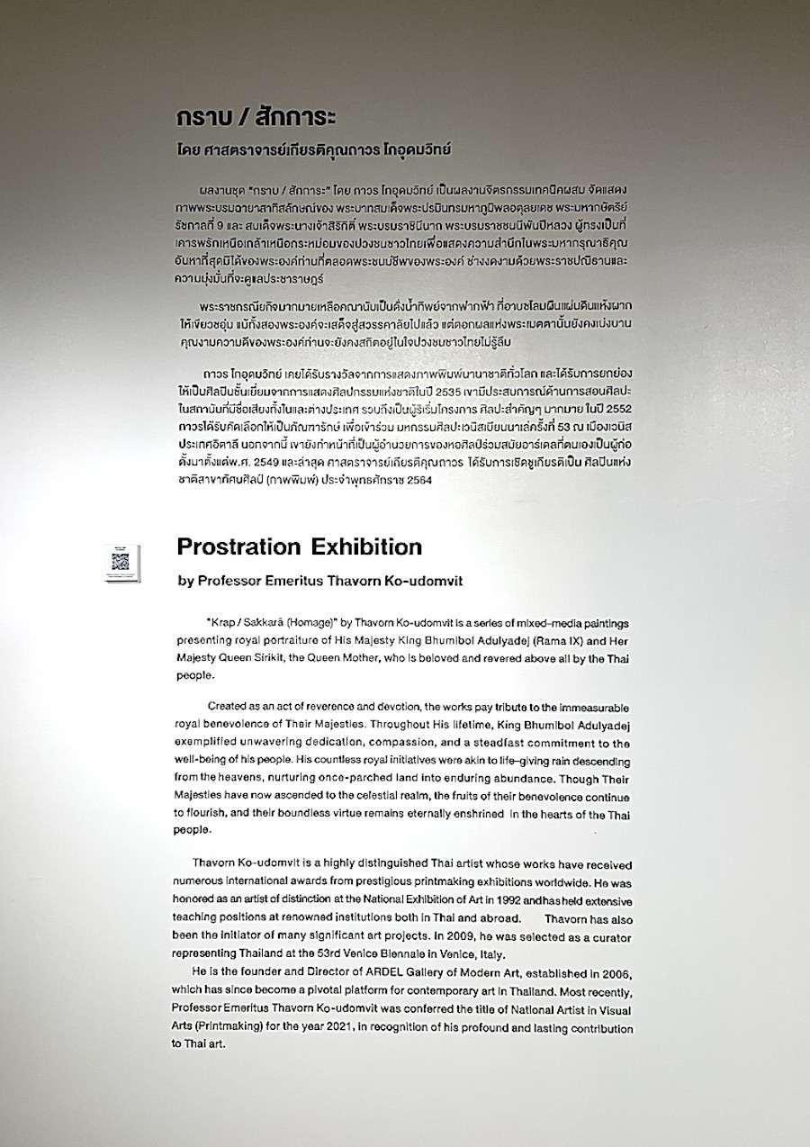 ชั้นที่สองจัดแสดงนิทรรศการ "กราบ สักการะ" ผลงานของ าสตราจารย์เกียรติคุณถาวร โกอุดมวิทย์ อาจารย์เคยจัดนิทรรศการชื่อเดียวกันเพื่อถวายอาลัย ในหลวงรัชกาลที่ ๙ เมื่อเดือนตุลาคม พ.ศ. ๒๕๖๐ ไปชมแล้วประทับใจมาก เก็บรูปมาอัพบล็อกไว้ที่บล็อก "กราบ สักการะ"...องค์สมเด็จพระภูมิพลมหาราช งานจัดได้อลังการมาก ตอนนั้นอาจารย์แจกภาพพิมพ์พระบรมสาทิสลักษณ์ขนาดใหญ่คนละ ๒ องค์ เราเก็บไว้อย่างดีเลยค่ะ