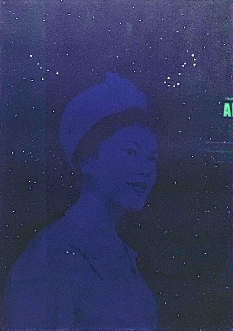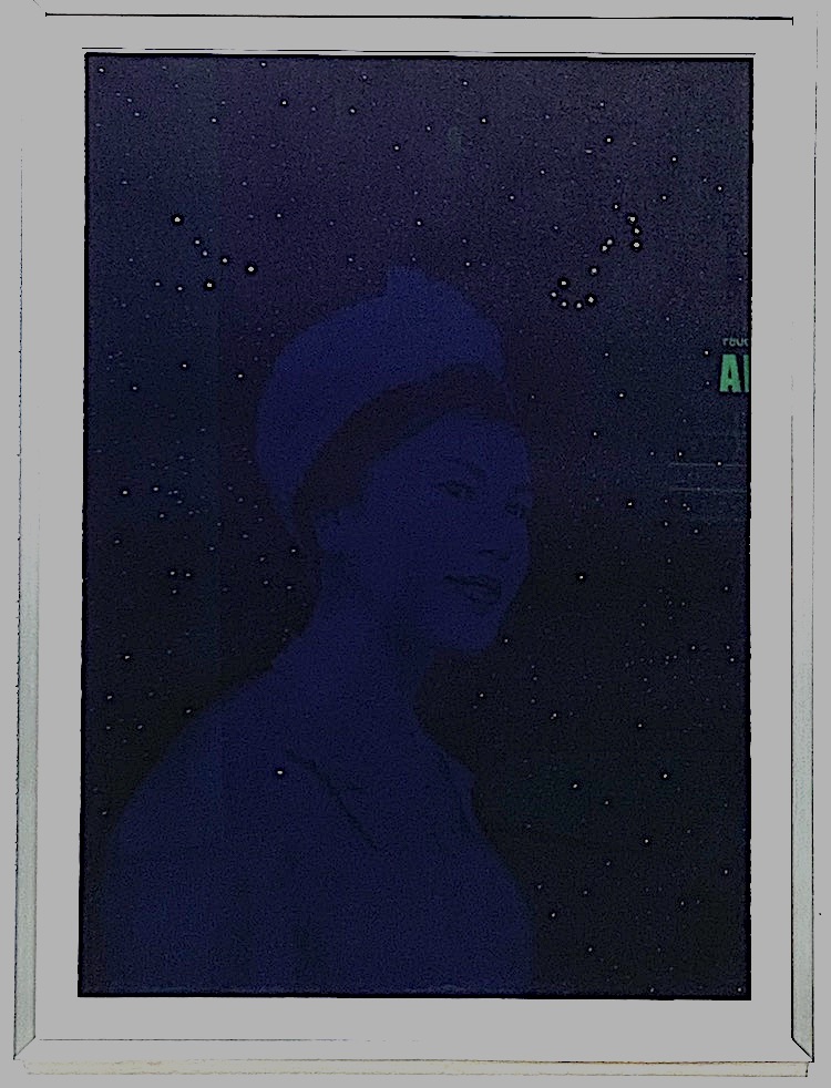 พระสาทิสลักษณ์องค์นี้ดูครั้งแรกเป็นพื้นสีน้ำเงินเข้ม ต้องเพ่งมองดี ๆ จึงเห็นว่าเป็นพระสาทิสลักษณ์ ปรับความสว่างของภาพให้ขาวขึ้น จะได้เห็นฝีแปรงของศิลปินค่ะ