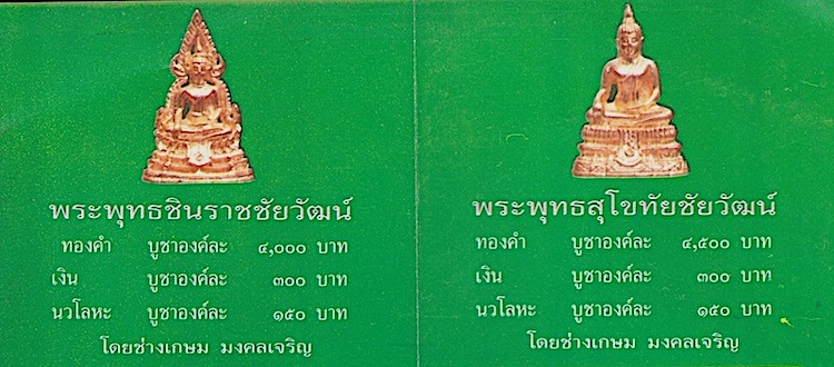 พระพุทธรูปบูชาที่เดสร้างเป็นครั้งแรก พระพุทธราชจำลองวัดวังทอง พิษณุโลก สร้างพระแล้วก็นำเงินไปสร้างวัดด้วย วัดวังทองที่เดช่วยสร้าง