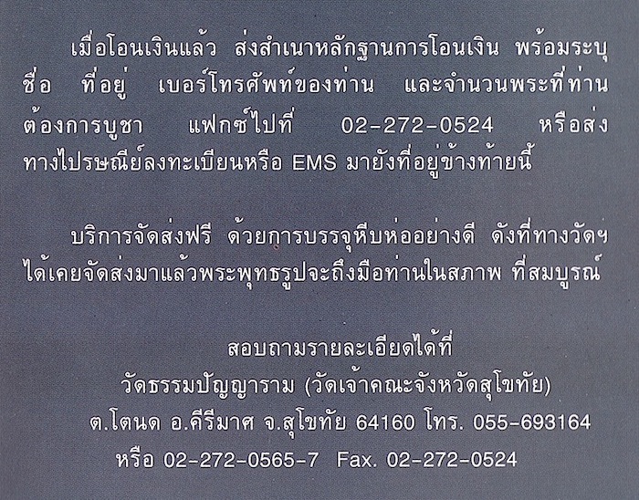 พอลงนสพ.แล้ว พระก็จำหน่ายได้หมดเกลี้ยง เหตุผลหนึ่งคือ เดรับรองความเสียหายขององค์พระในการขนส่ง และบริหารเรื่องเงินอย่างรัดกุม โดยไม่เปิดรับจองด้วยเงินสด ให้ผู้เช่าพระโอนเงินเข้าบัญชีของวัดหรือบัญชีของเดเพื่อจะตรวจสอบได้ และให้ผู้ที่สั่งจองส่งที่อยู่มาให้ทางไปรษณีย์