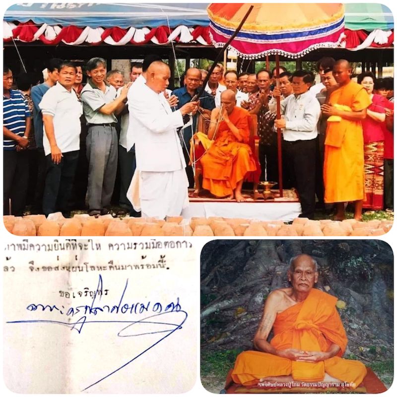 คุณบรรพต เคลือบแก้ว (ช่างที่ช่วยเดสร้างพระให้วัดวังทองฯ) รู้จักกับหลวงเตี่ย วัดศระเกศ เดเลยขอให้ช่วยกราบเรียนเชิญ หลวงเตี่ย มาเป็นประธานในพิธี วัดอยู่ติดถนน เดเลยให้ติดไฟส่องโบสถ์ ตอนกลางคืนจะดูสวยงาม ลงรายละเอียดของงาน ขนาดดอกบัวที่จัดไว้ให้คนมาทำบุญซื้อไหว้พระ เดก็ให้ญาติซื้อจากกรุงเทพฯ ขนใส่รถทัวร์ไปส่งที่วัดทุกวัน ทำให้ดอกไม้สดตลอด ธูปเทียนก็หาซื้ออย่างดี นำมาขายชุดละ ๑๐ บาท