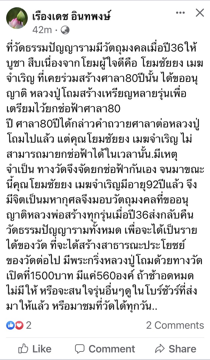 ร่างบล็อกจวนเสร็จแล้วถึงเห็นโพสนี้ของ คุณเรืองเดช อินทพงศ์ ในอากู๋ ลองไปหาชื่อนี้ในเฟซบุค เจอเพจแต่หาโพสไม่เจอ จาก เพจเรืองเดช อินทพงษ์