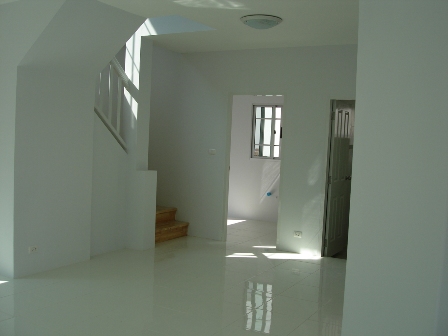 ไม่ได้มา update นานพอสมควรค่ะ ได้สักสองสามอาทิตย์แล้วละมั้งนะคะ มัวแต่ไปเดินงานบ้านและสวน แล้วก้องานโมเดินเฟอร์นิเจอร์แฟร์มา (แต่ก็ไปดูบ้านด้วยนะ แค่ขี้เกียจเอามาแปะไว้ในนี้)สุดท้ายเมื่อวานเซ็งๆ เลยแวะไปดูบ้านแก้เซ็งดีกว่า แอบไปวัดครัวด้วย ว่ากว้าง x ยาวเท่าใด จะได้มาออกแบบครัวแก้กลุ้มดีกว่า พอไปเห็นก้อดีใจค่ะ พี่น้องเซลล์ทั้งหลายบอกว่า บ้านพี่ก้อใกล้แล้วน๊า จะเสร็จแล้ววมีรั๊วบ้านแล้วค่ะ ถึงแม้จะยังไม่เสร็จดีก้อเถอะ ส่วนวงกบกับบานประตูหน้าต่าง ก็เอามาวางรอช่างล่ะ คาดว่าไม่เกินเสาร์นี้ก้อคงคิดเสร็จ เย้ๆ บ้านจะเป็นบ้านซะทีแล้วล่ะ รั๊วค่ะรั๊วกองหน้าต่างที่รอติดตั้งมีบันใดล่ะ ไม่ต้องปีนขึ้นไปแบบลำบากๆอีกแล้วว (ลูกตั้งลูกแรกสุดแอบห่าง ไว้ต้องไปดูอีกทีว่าแก้หรือยัง)ขึ้นบันใด ไปดูว่าที่โถงบันใด ก้อสวยดีนะมุมนึงของอนาคตห้องสมุด เราจะไว้ตู้หนังสือตรงนี้ล่ะอีกมุมของห้องสมุด อาจจะเป็นตู้เตี้ยๆ ชั้นเตี้ยๆ หรือโซฟาลานเล็กๆหน้าบ้านโรงรถบ้านเล็กๆของเราค่ะซอยบ้านค่ะ บ้านเราก้อหลังที่ 3 จากหลังแรกซอยบ้านอีกรูปนึงค่ะใกล้จะได้แต่งบ้านล่ะ