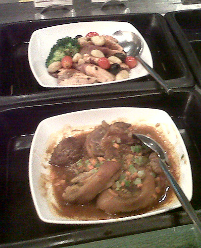 นอกจากอาหารแบบสายพานที่นั่งหยิบเอามาได้แล้ว ยังมีอาหารที่เตรียมไว้สำหรับเราอีก ทั้ง กุ้งทอดเทมปุระ , ข้าวแกงกะหรี่เนื้อ ,เกี๊ยวซ่า ,ปลาไข่ชุบแป้งทอด , จาจังมยอน