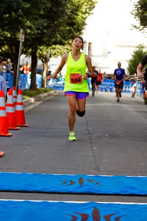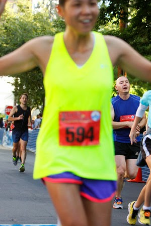 Mile 11 came the hill, I just concentrated on my form running uphill. When we hit mile marker 12, I decided to take off from the 1:50 group. I heard Laura cheering me on. I was getting tired at that point, but kept running. From mile 11-finish was pretty much uphill even though you didn't really see the hills but your legs felt them. I managed to pass a few more runners. As soon as I hit mile 13, I sprinted the last 0.1 miles to the finish line. It felt good passing lots of other runners at the end. But my photo probably didn't say so. LOL