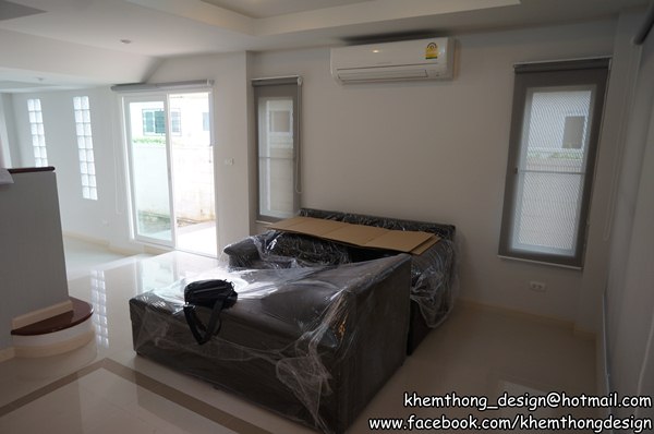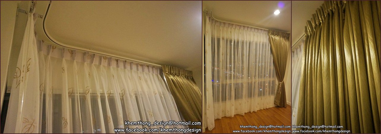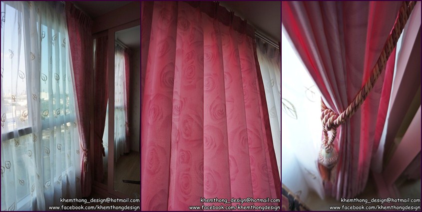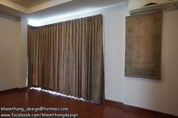 ห้องนอนห้องแรกเป็นม่านจีบ + รางประดับ ส่วนผ้าทึบเป็นผ้า blackout สีเทาเข้ม และม่านโปร่งเป็นผ้าสีเทา :: อัลบัมเต็ม :: //on.fb.me/Y1TXGq ::