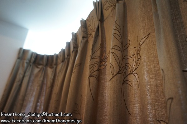 โถงล่างใช้ผ้าม่านตาไก่โทนสีน้ำตาลพร้อมผ้าโปร่งสีขาวลายดอกไม้สีเหลืองทอง ขอเกี่ยวสายรวบหางนกยูงครับ อัลบัมเต็ม //on.fb.me/Y4G5i7