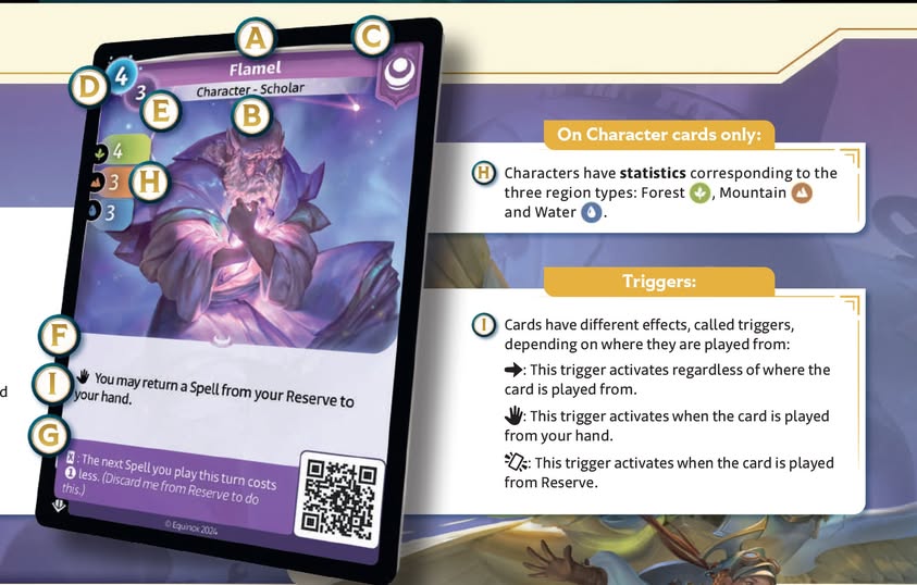 Altered เทรดดิ้งการ์ดเกมใหม่จากค่าย Equinox ที่ได้ออกบอร์ดเกมชื่อดังที่พวกเราคุ้นหูคุ้นตากันมาอย่าง Dixit, Mysterium, Dice Forge และบอร์ดเกมที่มีเอกลักษณ์เกมอื่นๆอีกมากมาย ตัวเกมมีระบบการเล่นที่น่าสนใจเลยทีเดียว ด้วย Game Play ที่ออกแบบมาว่าให้ผู้เล่นเลือกตัวละคร Hero และ Companion จากหก Faction เพื่อทำการออกเดินทางไปในดินแดนที่ยังตกสำรวจ และจะจบเกมเมื่อ Hero และ Companion ของผู้เล่นคนใดคนหนึ่งสำรวจดินแดนแห่งนั้นจนครบถ้วน และเดินทางมาบรรจบกันในการเล่นครั้งนั้นๆ โดยตัวเกมถูกออกแบบมาให้สามารถเล่นจบได้ภายในช่วงเวลาประมาณ 20 นาทีเพียงเท่านั้นเอง ที่มา https://www.facebook.com/share/172242oasM/ ----------------------------------------- มารู้จักการ์ดกันเล็กน้อย A: ชื่อการ์ด B: ประเภทการ์ดและประเภทย่อย C: ฝ่าย,เผ่า,faction (เอาที่สะดวก) D: ค่าร่ายในการเล่นจากมือ (ร่ายเหมือนเมจิก) E: ค่าร่ายใรการเล่นการ์ดจากพื้นที่ Reserve (ดูตอนเล่น) (ร่ายเหมือนเมจิก) F: ความสามารถการ์ด G: ความสมารถซัพพอร์ต: บางใบมีความสามารถเพิ่ม H: ตัวเลขที่ใช้เทียบกับพื้นที่ มีสามประเภท ป่า(เขียว), ภูเขา(น้ำตาล),น้ำ(น้ำเงิน) I: ความสามารถของการ์ดจะมีเงื่อนไขการใช้งาน ➡️ ความสามารถเกิดเมื่อเล่นการ์ดนี้ 🖐️ ความสามารถเกิดเเมื่อเล่นการ์ดนี้จากมือ 🍫 ความสามารถเกิดเมื่อเล่นการ์ดนี้จากพื้นที่ Reserve (ที่การ์ดฮีโร่จะมีบอกว่าสามารถวาง reserve กับ landmark ได้กี่ใบ) ที่มา https://www.facebook.com/share/1ALpNHhiAb/ Download คู่มือภาษาไทย https://drive.google.com/file/d/1KGi2Tbu36SxVXAvexLOQPx5Zsmfevs7a/view?fbclid=IwY2xjawNxfA9leHRuA2FlbQIxMABicmlkETFMUjB4cklkTE9Pb2dJMW5PAR6crG6NYwF0oh-NT9JFNyAHu3xuPqM7g4KcFPsdHYFetXulq9qpQmTGLlrwyg_aem_ect7w2LETbY9_aWVEwcL8QVIDEO VIDEO VIDEO
