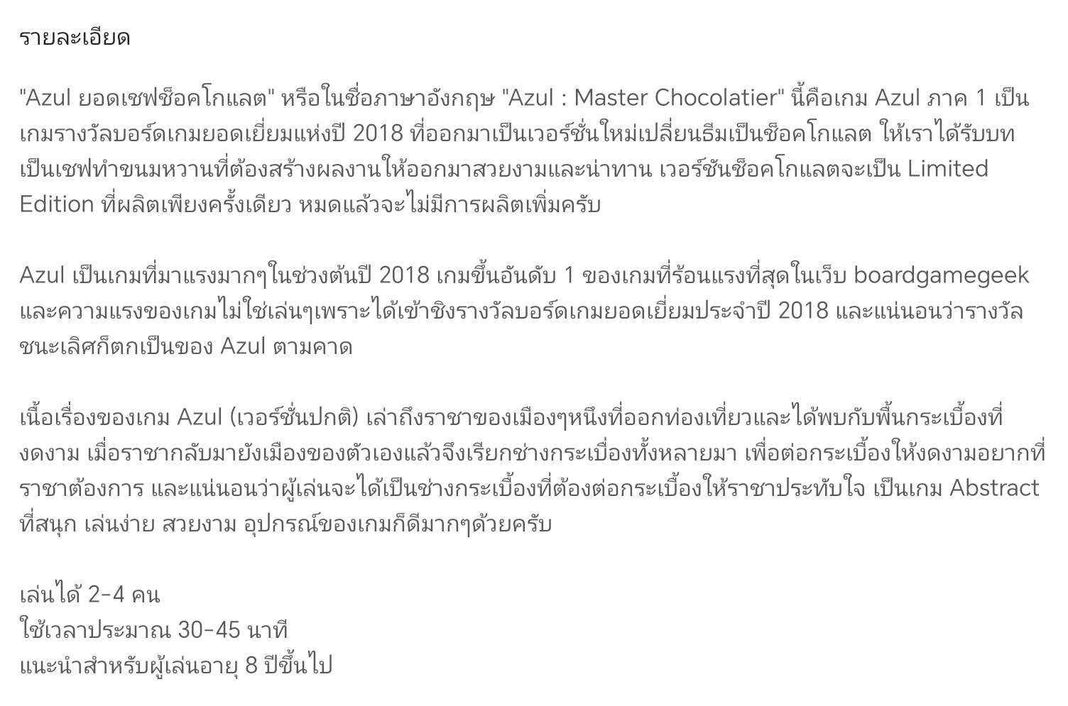 ผู้เล่น 1-6 คน ระยะเวลาในการเล่น 15 นาที ความสนุก BGG https://boardgamegeek.com/boardgame/312726/bubble-king เพื่อจะเป็นราชานักชงกาแฟโบราณ คุณต้องเร็ว เพราะลูกค้าต่างกระหายรอคอยเครื่องดื่มหวานฉ่ำจากคุณ ผู้เล่นแต่ละคนหยิบออเดอร์ชา กาแฟชนิดต่างๆ มา แล้วพยายามแข่งกันหยิบวัตถุดิบมาใช้ทำเมนูนั้นให้สำเร็จให้เร็วที่สุด เกมจะจบลงเมื่อมีใครสักคนทำเครื่องดื่มได้ครบ 5 เมนู คะแนนจะตัดสินว่าใครทำเงินได้สูงที่สุด เกมอาร์ตสวยๆ เห็นแล้วนึกถึงกาแฟโบราณยามเช้าแถวบ้าน ที่มา Board Game Academy Kopi King เป็นบอร์ดเกมแนวปาร์ตี้/จับคู่การ์ดที่รวดเร็วและสนุกสนาน ออกแบบโดย Daryl Chow และจัดจำหน่ายโดย Origame ธีมเกมจำลองการเป็นคนชงกาแฟโบราณสไตล์สิงคโปร์/มาเลเซีย (Kopitiam) ผู้เล่นแข่งกันรวบรวมการ์ดวัตถุดิบเพื่อทำเมนูเครื่องดื่มต่างๆ ให้ได้เงินมากที่สุด เหมาะสำหรับ 1-6 คน เล่นได้เร็วใน 15-20 นาที จุดเด่นของเกม Kopi King: รูปแบบการเล่น: เป็นเกมแนว Fast-paced ที่ผู้เล่นต้องแย่งกันหยิบการ์ดวัตถุดิบ (Ingredient Cards) เช่น นมข้น, กาแฟ, ชา, ไมโล เพื่อให้ตรงกับเมนูออเดอร์ (Order Cards) ของตัวเอง ธีมวัฒนธรรม: กราฟิกสวยงามน่ารัก อิงจากบรรยากาศร้านกาแฟโบราณ มีเมนูยอดฮิต เช่น Kopi C, Teh Tarik, Milo Dinosaur อุปกรณ์ภายในกล่อง: ประกอบด้วยการ์ดวัตถุดิบ 104 ใบ และการ์ดออเดอร์ 33 ใบ ความง่ายและเวลา: เหมาะสำหรับครอบครัว (อายุ 6-10 ปีขึ้นไป) เข้าใจกติกาได้ง่ายและจบเกมไว เป้าหมาย: ทำภารกิจเสิร์ฟเครื่องดื่มให้ครบตามจำนวนที่กำหนด (เช่น 5 แก้ว) และทำคะแนนให้ได้สูงสุด เกมนี้ได้รับความนิยมในฐานะเกมที่เล่นง่าย สนุก และได้บรรยากาศความหลังของวัฒนธรรมร้านกาแฟในแถบเอเชียตะวันออกเฉียงใต้ -----------------------------------VIDEO