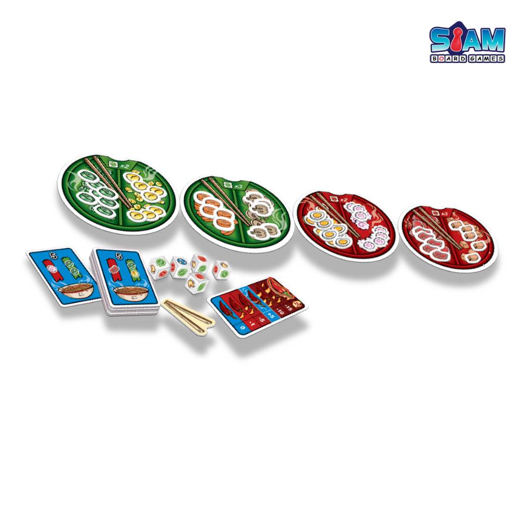 ดำดิ่งสู่โลกการแข่งขันอันแสนเอร็ดอร่อยและเผ็ดร้อนในบอร์ดเกมราเมนสุดขีดเกมที่ผู้เล่นจะต้องแข่งขันกันทำสุดยอดราเมน!.ในเกมนี้ผู้เล่นต้องแข่งกันทำราเมน ตามออเดอร์ชามราเมนที่เปิดอยู่กองกลาง โดยการรวมรวมวัตถุดิบและจ่ายวัตถุดิบที่ตรงกับการ์ดเพื่อรับการ์ดชามราเมนมาเป็นคะแนนนอกจากการทำราเมนแล้วยังสามารถเพิ่มหรือลดระดับความเผ็ดร้อนของชามราเมนได้อีกด้วย แต่ระวังให้ดีหากราเมนของคุณเผ็ดร้อนเกินไปจะไม่ส่งผลดีแน่นอน.แต่ละรอบเมื่อเข้าตาเล่นต้องทำดังนี้ ทอยลูกเต๋า , ทอยซ้ำ(สูงสุด3ครั้ง) , ใช้หน้าเต๋า (เก็บผัก/เก็บโปรตีน/เพิ่มความเผ็ดให้ผู้เล่นอื่น/ลดความเผ็ดให้ตนเอง)เมื่อทำเรียบร้อยแล้ว ผู้เล่นสามารถทำแอคชั่นพิเศษ (หรือไม่ทำก็ได้) คือ ยึดการ์ดชามราเมน , ใช้ตะเกียบ(ขโมยวัตถุดิบผู้เล่นอื่น หรือ รีเซทชามใหม่) , สลับวัตถุดิบหนึ่งอย่าง (ที่มูลค่าเท่ากัน)เมื่อทำเสร็จสิ้นแล้วจึงเข้าสู่ตาผู้เล่นคนถัดไป.เกมจะจบลงเมื่อการ์ดชามใบสุดท้ายถูกเปิดขึ้นมา ผู้เล่นแต่ละคนจะได้เล่นอีกคนละรอบแล้วจึงเข้าสู่ช่วงนับคะแนน ที่มา https://siamboardgames.com/boardgames/party-board-games/ramen-extreme/ -------------------------------------------------