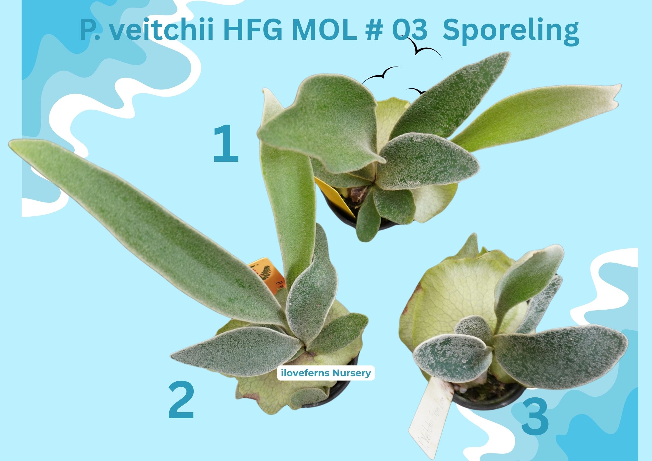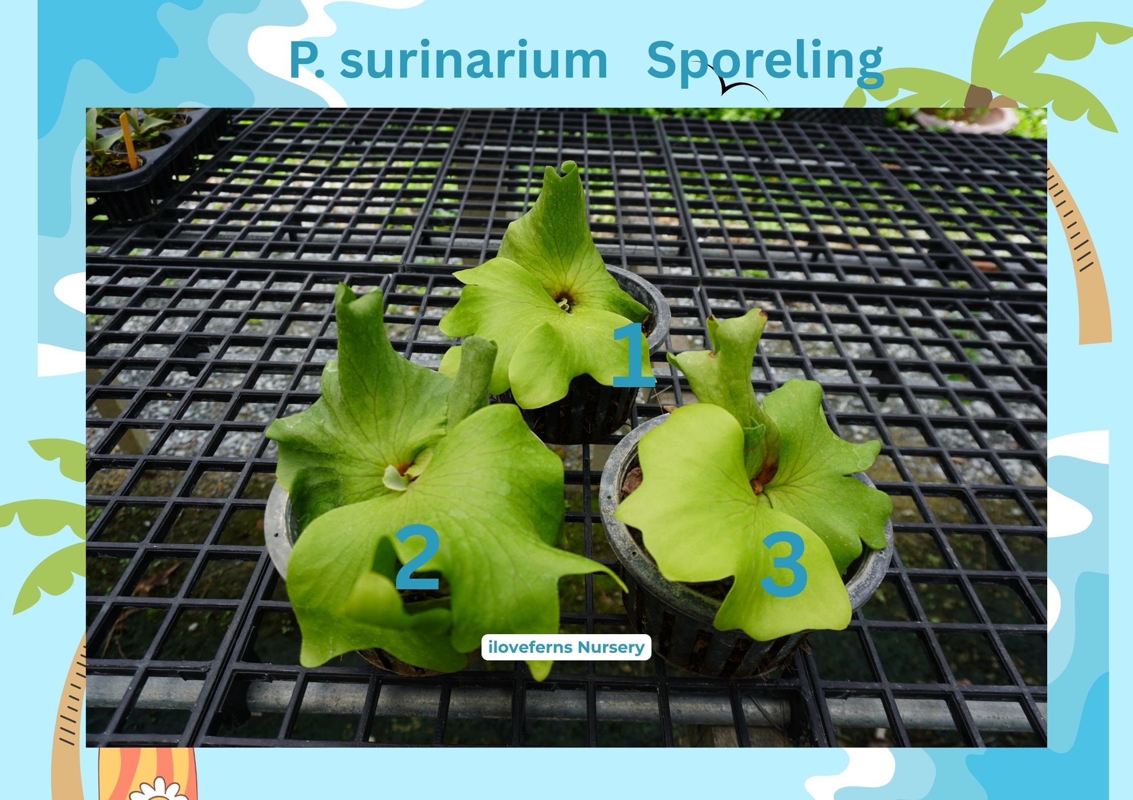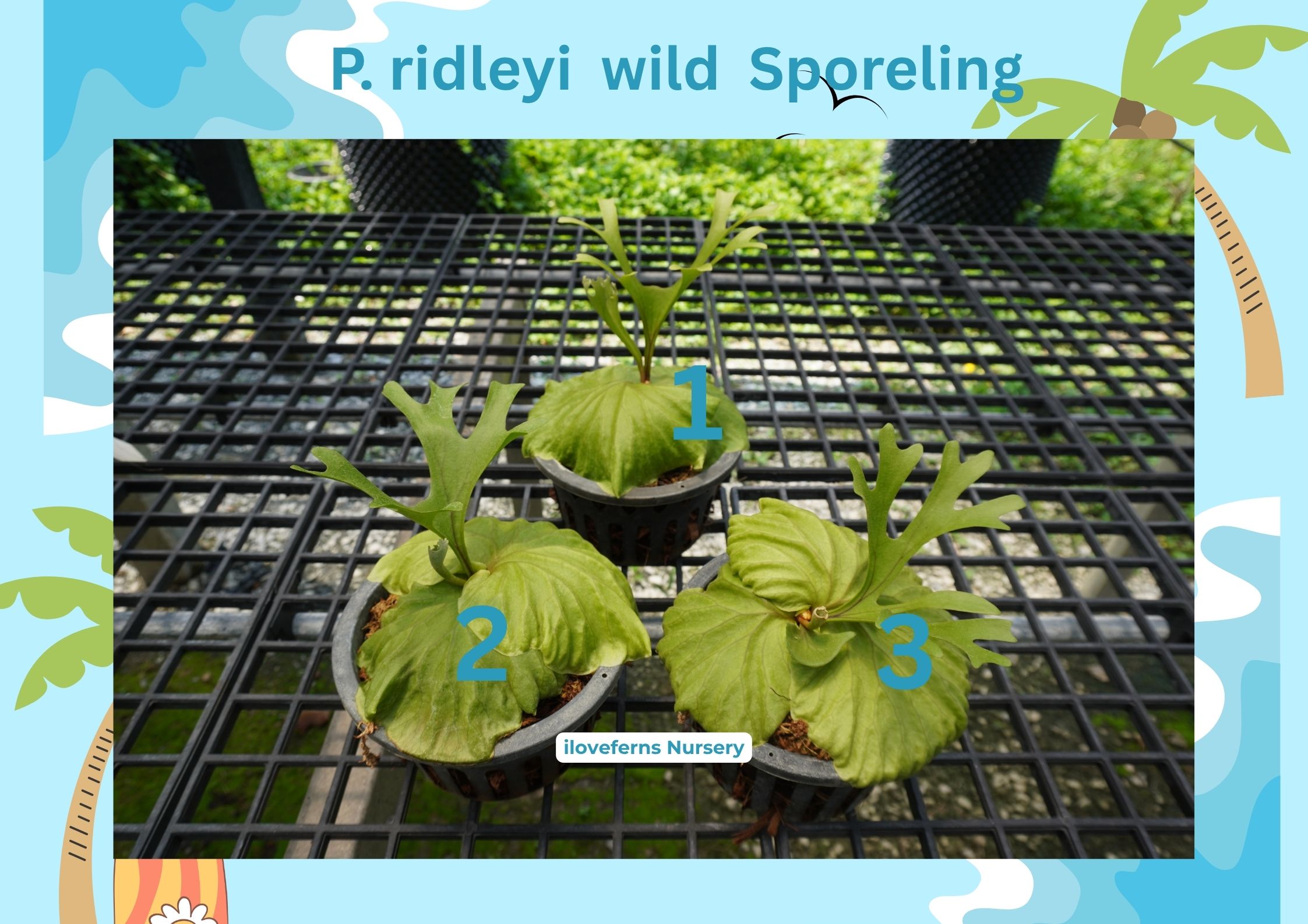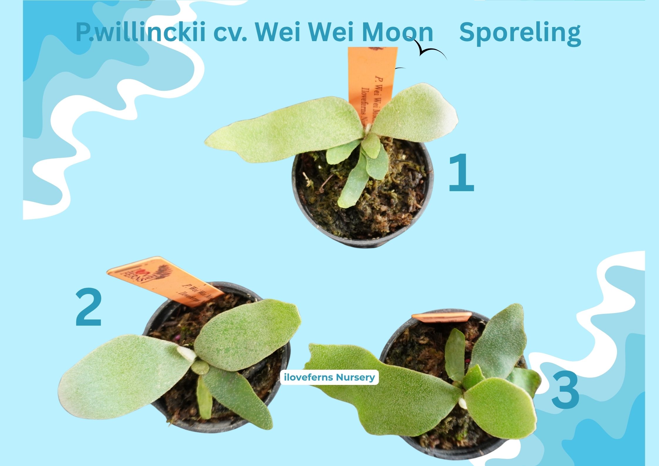 Jay P. Ginka sporeling No.2 P. ridleyi Dwarf all P. SSFoong x Laora No.2 P. veitchii HFG x GGG#2 No.3 P. veitchii Alien stock 1 P. willinckii Foythong SPL P. willinckii cv. Yellow Moon Selection spl No.1