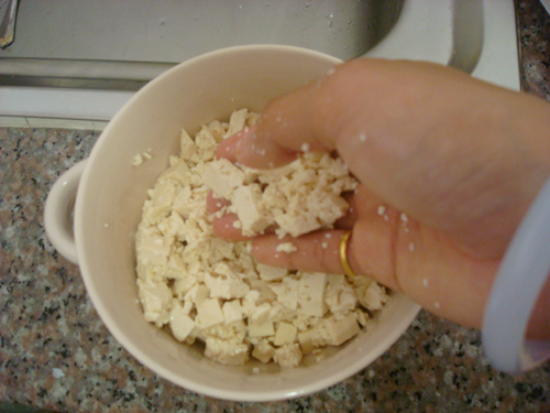 เต้าหู้ขาวล้างให้สะอาด สับ