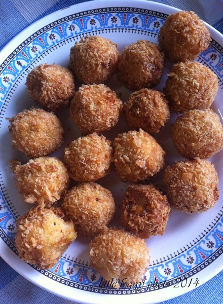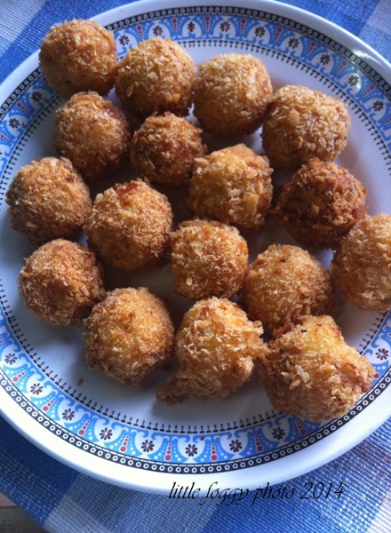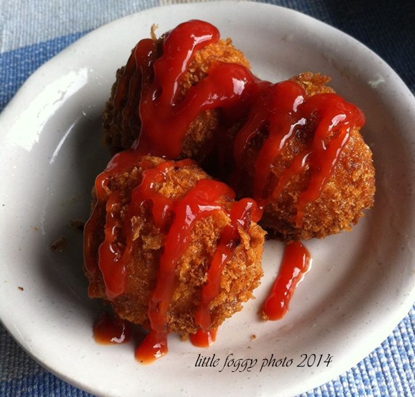โครเกต์ ไก่ข้าวโพด บล้อกนี้จะมาทำของว่างไว้ทานเล่นๆหรือจะทำเป็นมื้อเช้าหมอกว่าก็น่าสนใจดีค่ะ หมอกทำไปเมื่อวันเเม่ที่ผ่านมา เป็นอาหารเช้าเเละเสบียงในการเดินทางไปเที่ยวกาญจนบุรีเมื่อวันเเม่ด้วยค่ะ โครเกต์ เป็นของว่างที่ทำง่ายๆเลยนะคะ แถมจะใส่อะไรลงไปก็ได้ด้วย วันนี้หมอกเลือกใส่ไก่ กับข้าวโพดหวานค่ะ สิ่งที่ต้องเตรียม มันฝรั่ง ปอกเปลือกหั่นเต๋า(แล้วแต่อยากทำมากหรือน้อย) ไก่สับ พอประมาณ ไม่มากเกินไปไม่น้อยเกินไป หอมใหญ่ ข้าวโพดหวาน(หมอกใช้เเบบกระป๋องค่ะ) รากผักชี กระเทียม เกลือ พริกไทย วิธีทำ ต้มมันฝรั่งให้สุกแล้วเอาออกใส่ตะเเกรงพักให้สะเด็ดน้ำค่ะเเล้วใส่ภาชนะรอไว้ หมอกใช้กะละมัง 555 ![]() บดมันฝรั่งด้วยส้อมหรือช้อนหรือใครมีที่บดมันก็นำมาใช้เลย หมอกใช้ตะกร้อมือค่ะ ![]() จากนั้นโขลกกระเทียมกับรากผักชี คลุกเคล้าไก่สับเเล้วนำไปรวนให้สุกค่ะ นำมาผสมกับมันฝรั่ง ใส่ข้าวโพดหวาน ปรุงรสด้วยเกลือเเละพริกไทย ![]() จากนั้นปั้นเป็นก้อนกลมๆ ตีไข่ให้เเตก เอามันฝรั่งที่ปั้นไว้ลงชุบในไข่ให้ทั่ว เเล้วนำไปกลิ้งบนเกล็ดขนมปัง รอไว้ระหว่างนี้เอาน้ำมันใส่กะทะเตรียมทอดเลยนะคะ น้ำมันร้อนก็นำมันฝรั่งที่พร้อมทอดเเล้วลงไป ทอดจนเหลืองกรอบ เอาขึ้นพักให้สะเด็ดน้ำมัน ก็พร้อมเสริฟค่ะ ![]() หมอกทำได้เกือบ 20 ลูกเลย ใช้มันฝรั่งหัวไม่ใหญ่มาก4หัว ![]() เวลาทานจะใช้ซอสอะไรก็ได้ หมอกใช้ซอสมะเขือเทศค่ะ ![]() เสร็จเเล้วค่ะง่ายมั้ยคะ ![]() น่ากินมากเลยน้องหมอก คำเล็กๆ พอดีคำ .... กินซัก 10 อันก็ไม่อิ่มเนอะๆ ฮ่าๆๆๆๆ