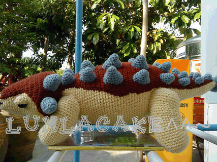 ไดโนเสาร์ อิลาสโม่ หัว ถักแบบก้นหอย ไหมสีเหลือง 1. 6X (6) 2. 6V (12) 3. 12X (12) 4. XV*6 (18) 5. 18X (18) 6. 2XV*6 (24) 7. 24X (24) 8. 3XV*6 (30) 9. 30X (30) 10. 4XV*6 (36) 11. 36X (36) 12. 5XV*6 (42) 13. 42X (42) 14. 6XV*6 (48) 15-21. 48X (48) 22. 6XA*6 (42) 23. 42X (42) 24. 5XA*6 (36) 25. 36X (36) 26. 4XA*6 (30) 27-28. 30X (30) 29. 10X, 20X (30) 30-32. 30X (30) 33. 10X ในแถวที่ 29, 20X ทยอยใส่ใยโพลีฯ (30) 34. 30X (30) 35. 10X, 20X (30) 36-37. 30X (30) 38. 10X ในแถวที่ 35, 20X (30) 39. 30X (30) 40. 10X, 20X (30) 41. 30X (30) 42. 10X ในแถวที่ 40, 20X (30) 43. 30X (30) 44-47. ถักเหมือนแถวที่ 40-43 ทยอยใส่ใยโพลีฯให้แน่น (30) 48-51. ถักเหมือนแถวที่ 40-43 (30) 52-55. ถักเหมือนแถวที่ 40-43 (30) 56-59. ถักเหมือนแถวที่ 40-43 (30) 60-63. ถักเหมือนแถวที่ 40-43 (30) 64-80. 30X (30) 81. 30X, C ใส่ใยโพลีฯ เพิ่มให้แน่น(30)