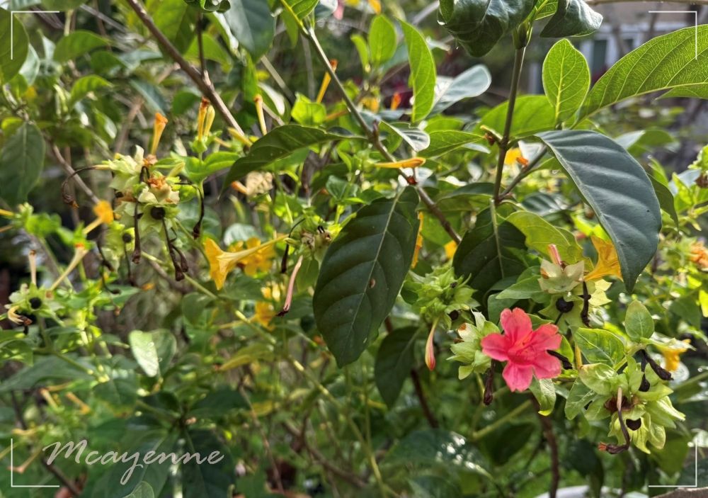ต้นไม้อีกต้น นางเป็นไม้ล้มลุกที่มักเห็นปลูกตามข้างๆเพิงไม้ หรือบ้านร้านค้าต่างจังหวัด บ้านหลังใหญ่หรือสถานที่ใหญ่รโหฐานไม่ค่อยเห็นปลูกกัน คงเพราะไม่มีราคาค่างวด ไม่ได้ยิ่งปลูกยิ่งมีราคา หรือจะสวยระดับตกตะลึงหรือส่งกลิ่นหอมฟุ้งขนาดนั้น สำหรับลูกพี่คือ ออกรก เพราะฉะนั้นตรงไหนรกๆ เอาเมล็ดไปฝังไว้ จะทำให้รกแบบมีอะไรให้ดู แต่ จขบ. ชอบนางน่ารักดี สีนางสวยสะกดใจแสบตา "บานเย็น" สีนางสวยขนาดเป็นชื่อ ของ สีบานเย็น นางเป็น ไม้ดอกโบร้าน โบราณ เปิดกล่องความทรงจำวัยเด็ก กว่าจะได้เมล็ดมาไม่ใช่ง่าย เพราะไม่มีขาย ไม่ค่อยมีคนปลูก ต้องมีจังหวะมีต้นมีเมล็ดและใจกล้าขอเมล็ด มาเพาะลุ้นอีก นางน่ารัก เป็นธรรมชาติ ธรรมดามาก เลี้ยงแบบไม่ต้องเลี้ยง ไม่ต้องดูแลประคบประหงม ดอกพริ้วไหวน่ารัก สีสวยงาม และ ในหนึ่งต้นมีหลายสี คอยลุ้นว่าวันนี้ นางจะให้ดอกสีอะไร มีใบเป็นรูปหัวใจ ชอบ แต่นางเริ่มบานตอนบ่ายเหมือนชื่อ สี่โมงเย็น คึกคักตอนกลางคืนหอมแรงตอนเช้านางเริ่มสะลึมสะลือไม่มีกลิ่น ดอกบานเย็น เป็นสกุล Mirabilis ที่นิยมปลูกมากที่สุด มีสีดอกที่หลากหลาย กล่าวกันว่าบานเย็นถูกนำออกมาจากบานเย็นนแม่ต้น (อังกฤษ : Four-o’clocks; Marvel of Peru ; ชื่อวิทยาศาสตร์ : Mirabilis jalapa ) เป็นไม้ดอกากถิ่นกำเนิดในบริเวณเทือกเขาแอนดิส ในเปรู ช่วงปี ค.ศ. 1540 คำว่า Mirabilis ในภาษาละตินหมายถึง ยอดเยี่ยม, สวยงาม, มหัศจรรย์ ส่วนคำว่า Jalapa เป็นชื่อเมืองแห่งหนึ่งในประเทศเม็กซิโก