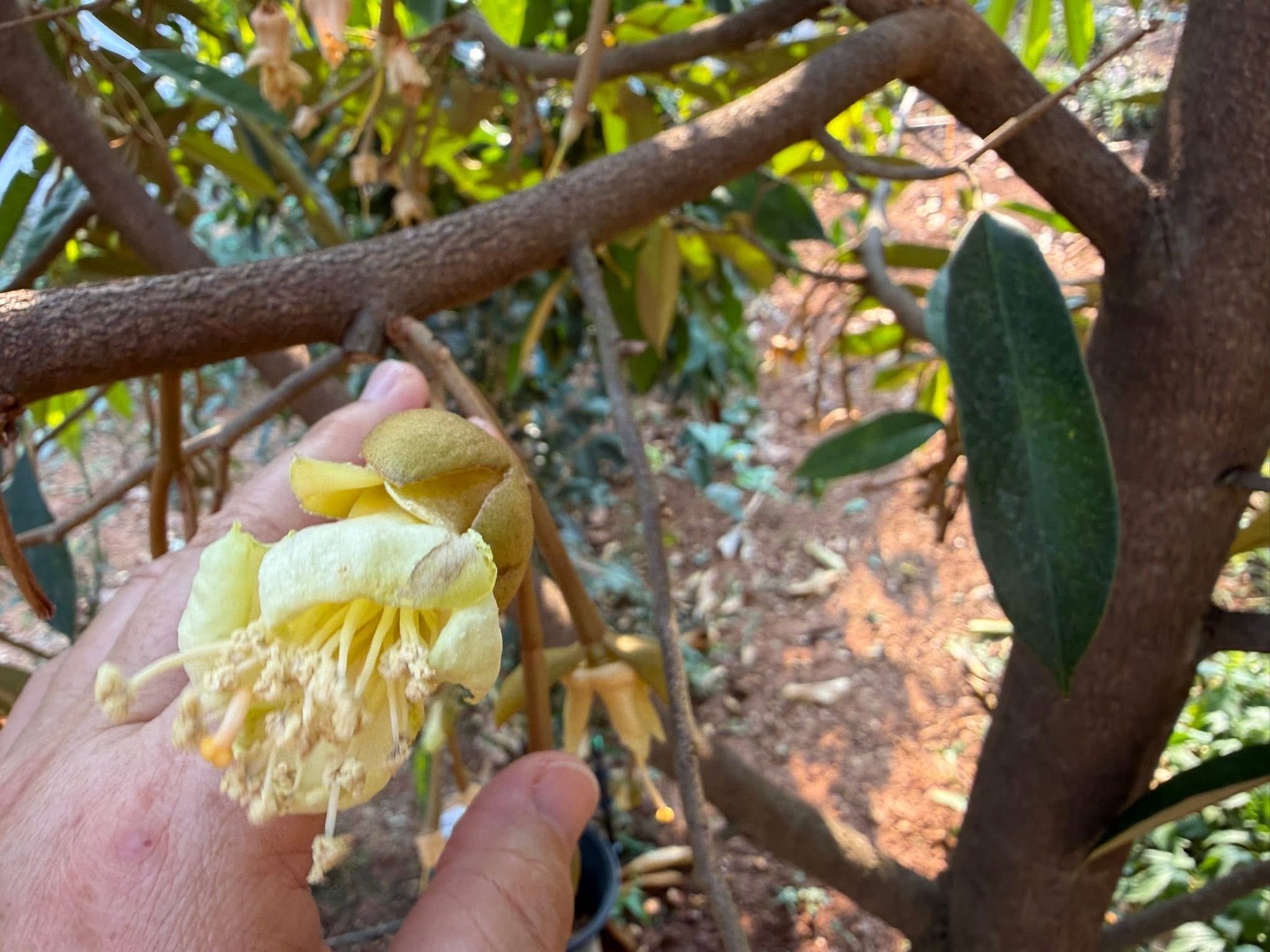 ทุเรียนติดดอก ดอกทุเรียนสวยคล้ายดอกโคมญี่ปุ่น
