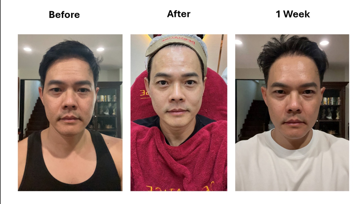 เรื่องเริ่มจากคุณพี่วัย 49 เริ่มส่องกระจกแล้วรู้สึกว่า “ทำไมแก้มมันลงใต้คางทุกวันแบบนี้” กรอบหน้าที่เคยมีเหมือนจะลาพักร้อนยาว ริ้วรอยก็เริ่มมาทักทายแบบไม่ได้นัดหมาย เดิมทีไม่ได้คิดจะเข้าวงการความงามเลย แต่โดนน้องสาวเป่าหูว่า “ไปทำเถอะพี่ เดี๋ยวจะหล่อขึ้น” สุดท้ายก็ใจอ่อนค่ะ 😆 พอไปปรึกษาคุณหมอที่คลินิก Dermatige ก็จัดแพ็กเกจยกกระชับแบบเต็มระบบ ทั้งเครื่องยกกระชับผิว และโบท็อกซ์ เป้าหมายคือทำให้หน้าเรียว กรอบหน้าชัด หรือที่เรียกกันขำ ๆ ว่า “หน้ายุง” (คือเรียวเล็กขึ้นนั่นเอง ไม่ได้แปลงร่างเป็นแมลงนะคะ 🦟)