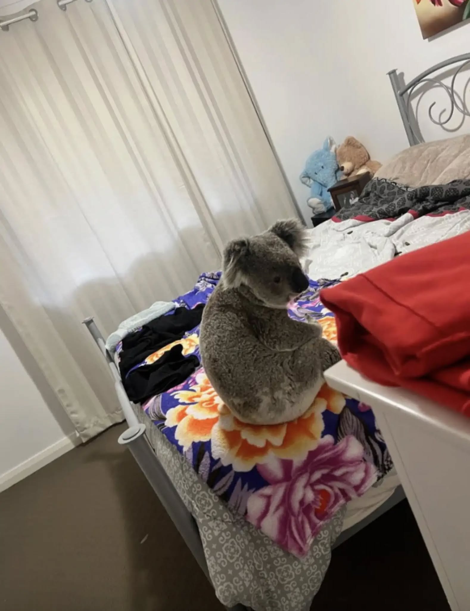 กลางค่ำคืนในออสเตรเลีย คู่สามีภรรยาคู่นี้ได้รับเสียงเห่าของสุนัขที่ดังก้องลั่นจากลานบ้าน ทำให้พวกเขารีบลุกขึ้นมาสำรวจด้วยความเป็นห่วง แต่สิ่งที่พบกลับทำให้ทั้งคู่ตกใจและอดยิ้มไม่ได้ — ตรงหน้าต่างมี โคอาลาตัวหนึ่งกำลังตัวสั่นอยู่ ราวกับกำลังหาที่ปลอดภัยในโลกมนุษย์ ความหวังที่จะช่วยเหลือโคอาลาทำให้พวกเขาเปิดประตูออกไป แต่เจ้าโคอาลากลับ วิ่งพรวดเข้ามาในบ้านอย่างรวดเร็ว และปีนขึ้นไปหลบอยู่บนเตียงนอน ราวกับเลือกที่พักผ่อนที่สบายที่สุดในบ้านเจ้าของ 😅 ภาพนั้นสร้างความตื่นเต้นและขบขันในเวลาเดียวกัน เพราะโคอาลาแทบจะกลายเป็นแขกที่ไม่คาดคิดที่สุดของค่ำคืนนั้น ทันทีที่ควบคุมสถานการณ์ได้ พวกเขาโทรเรียก หน่วยช่วยเหลือสัตว์ป่า WIRES Wildlife Rescue ทีมงานผู้เชี่ยวชาญมาถึงอย่างรวดเร็ว เพื่อประเมินสภาพร่างกายและสุขภาพของโคอาลา จากนั้นจึงนำมันไปตรวจอย่างละเอียดที่ Northern Rivers Koala Hospital ผลปรากฏว่าเจ้าโคอาลาสุขภาพแข็งแรงดี ไม่มีบาดแผลหรืออาการเจ็บป่วยใด ๆ หลังจากได้รับการดูแลอย่างปลอดภัย โคอาลาตัวนี้ก็ถูกปล่อยกลับสู่ ป่าในพื้นที่ถิ่นเดิม ที่คุ้นเคยอีกครั้ง เรื่องราวของค่ำคืนนั้นจึงจบลงอย่างอบอุ่น เป็นบทพิสูจน์ว่า แม้โคอาลาจะเป็นสัตว์ป่า แต่ในบางครั้งมันก็สามารถสร้างรอยยิ้มและความประทับใจให้กับมนุษย์ได้อย่างไม่คาดคิด และเตือนให้เราเห็นคุณค่าของการมีน้ำใจต่อเพื่อนร่วมโลกผู้แปลกใหม่ที่เข้ามาเยือน.