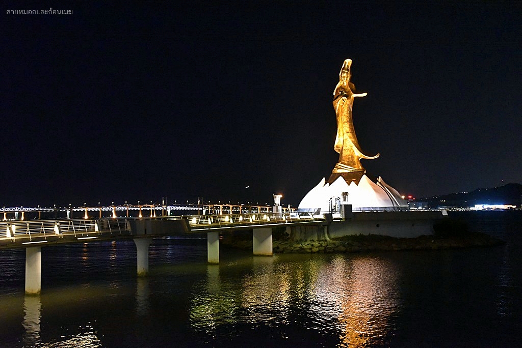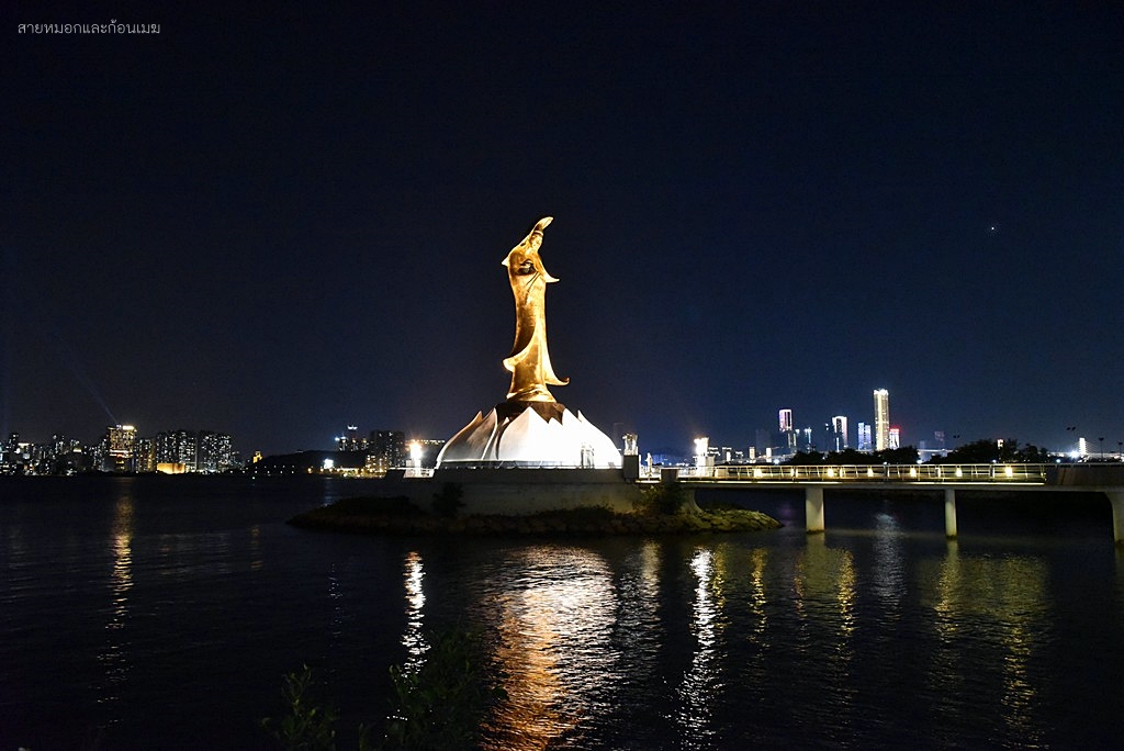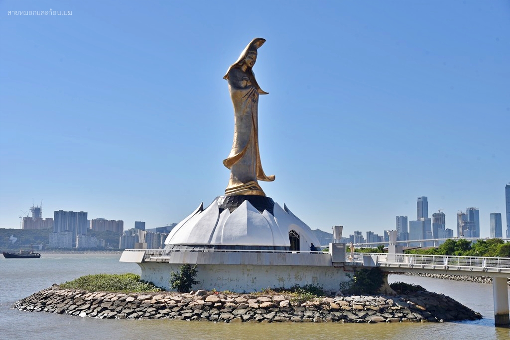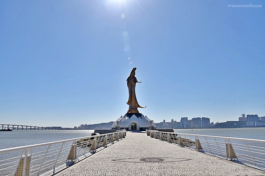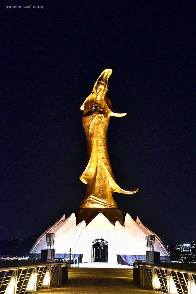 เจ้าแม่กวนอิม ของ Kun Iam Ecumenical Centre โดดเด่นแตกต่างจากที่อื่น ๆ คือจะมีการผสมผสานระหว่างงานปั้นของพระแม่มารี ที่ถ่ายถอดออกมาเป็นพระพักตร์ของเจ้าแม่กวนอิม แต่อาภรณ์เครื่องทรงยังเป็นแบบจีนโบราณดั้งเดิม โดยประติมากรรมรูปปั้นนี้ ได้รับการสนับสนุนการสร้างจาก UNESCO เพื่อเป็นสัญลักษณ์แห่งวัฒนธรรมของภาคตะวันออกและภาคตะวันตกรูปปั้นเจ้าแม่กวนอิม จะตั้งยื่นออกไปในทะเล ห่างจากชายฝั่ง 60 เมตร มีความสูง 20 เมตร ยืนประทับอยู่บนฐานดอกบัว ที่มีความสูง 4 เมตร ทั้งองค์จะทำด้วยทองสัมฤทธิ์ มีน้ำหนักกว่า 1.8 ตัน การเดินทาง : รถบัส 1A, 8, 12, 17 หรือ 23 มาลงที่ป้าย Guanyin Lianhua yuan (觀音蓮花苑) พิกัด : https://maps.app.goo.gl/NdWGxp748Fcdm2kB7 เวลาเปิด-ปิด : รูปปั้นเจ้าแม่กวนอิม ชมได้ตลอดทั้งวัน, ห้องสมุด 10.00 - 21.00 น. (ปิดวันศุกร์)