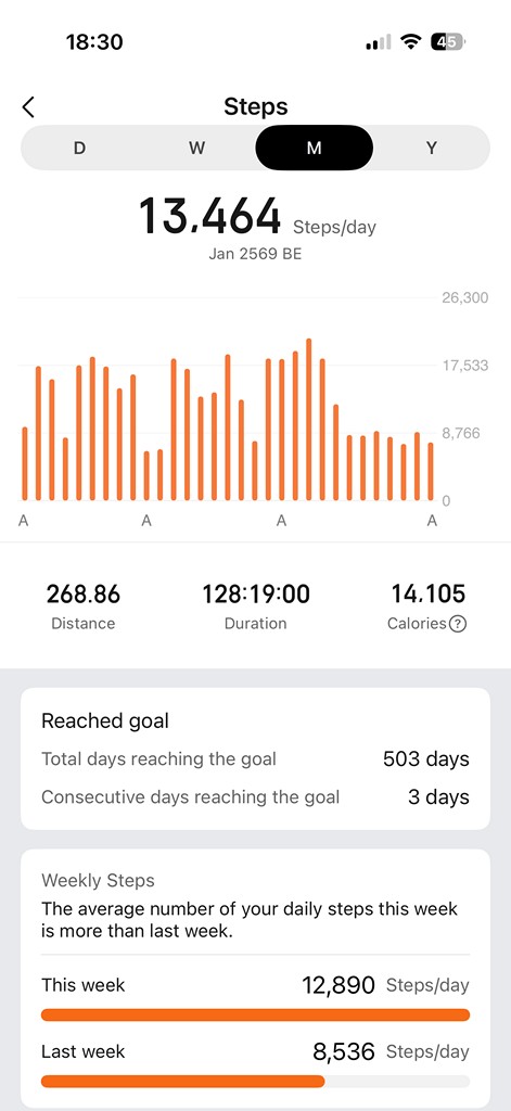 กราฟแสดงการเดินจาก smart watch มกราคม 2569