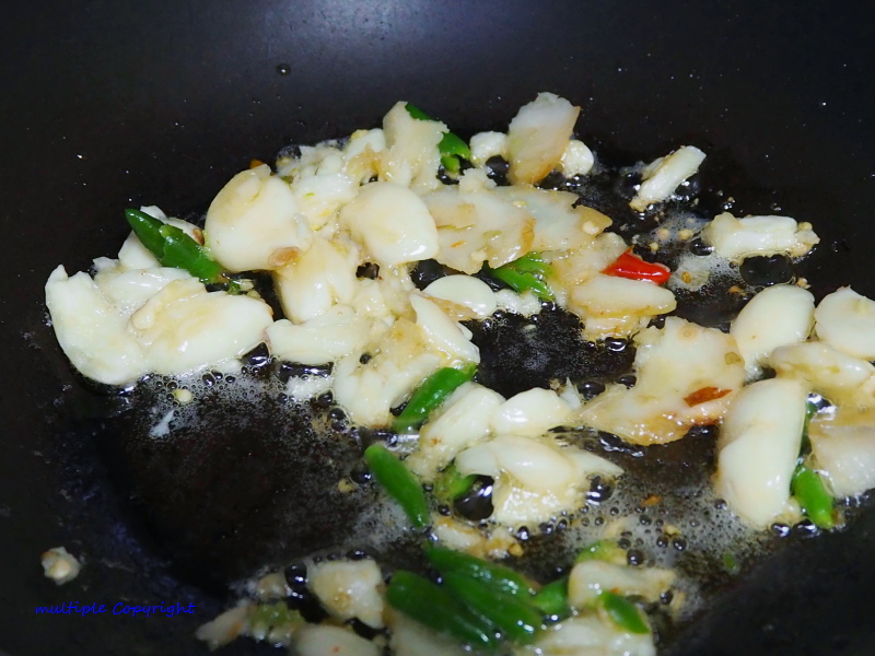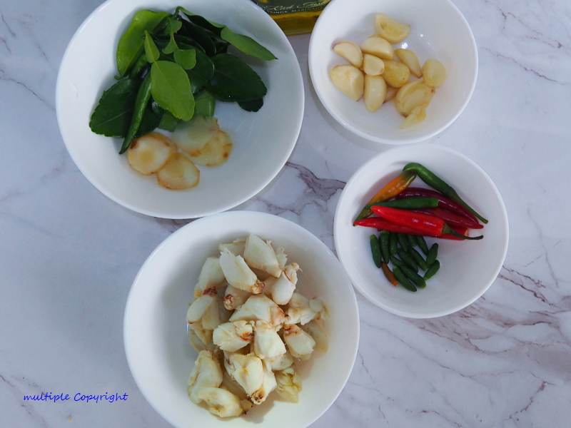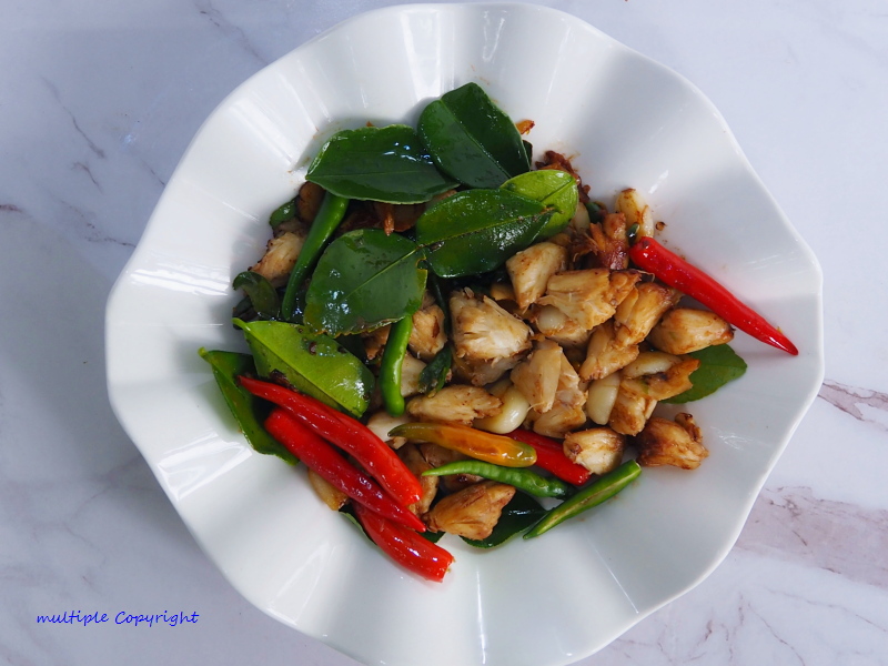 พริกกับใบมะกรูด ใส่ไปทั้งเม็ดทั้งใบเลยเหรอคะ ก็ดีค่ะ หยิบออกง่ายดี 555