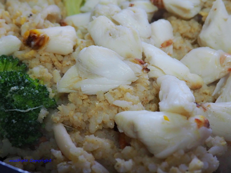 ผัดกระทะเหล็กไฟแรง ๆ จนข้าวดีดเด้งจากกระทะ หอมกลิ่นกระทะนิด ๆ