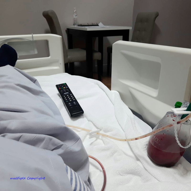 กลับมาถึงตอน 4ทุ่ม พร้อมสายเสียบระโยงระยางเต็มตัว ไล่ตั้งแต่จากกลางหลัง แผลที่ผ่า มาเข้ากระปุกระบายเลือด สายยาฆ่าเชื้อ สายน้ำเกลือครบชุด พอฟื้นขึ้นมา อาจารย์เต๊ะ รีบคลำดูน้องชายทันที มีสายเสียบเข้าถุงเรียบร้อย โอ๊ย โดนเสียบสายจู๋ อีกแล้วอ่า แง๊ๆ แล้วปากก็เจ่อๆ สันนิษฐานว่า น่าจะโดนพยาบาลตบปาก เอ๊ย โดน เสียบท่อหายใจอีก แหงๆเลยตรู 555