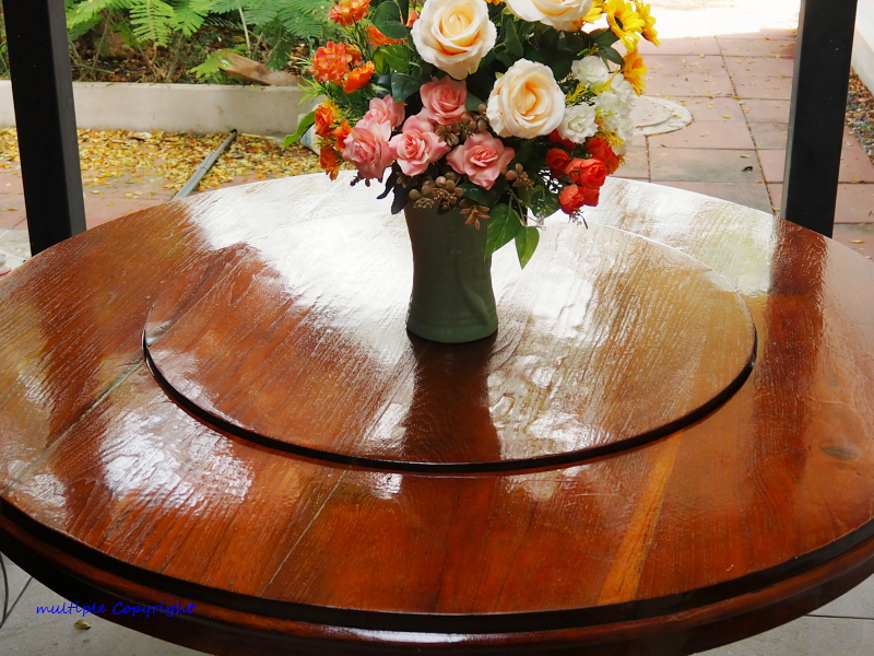 ให้ช่าง ที่มาทำสีโต๊ะกลมดู เค้าบอกว่า ไม้สักเก่า แบบนี้ ไปซื้อก็ต้องมี 4-5000 เป็นอย่างน้อย จ้า เห็น โต๊ะรกๆแบบนี้ ก้ทำงานหาเงิน ให้อาจารย์เต๊ะ มา จนเต็มกล่องขนมหลายใบเลยเชียว5555