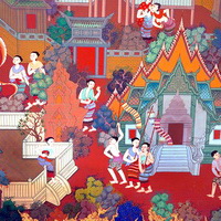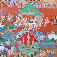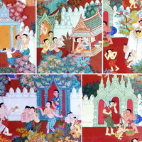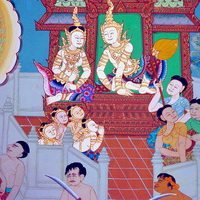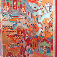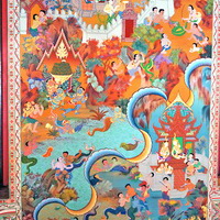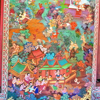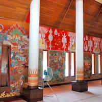 Wat Sri Khom Kham, Phayao | Location: On the old Phaholyothin Road next to Phayao Lake, in the town centre of Phayao. Location of murals: In Bot (the main temple) and Sala (pavilion). Stories: Bot: The Buddha Story and the Buddha’s Ten Previous Lives. Sala: The legend of Phra Chao Ton Luang (the main Buddha in this temple’s Vihara). | | | |