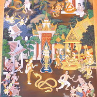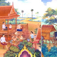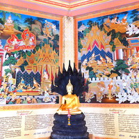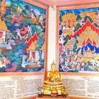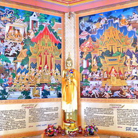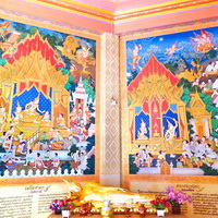 | Wat Wang Manao, Ratchaburi | Location: Mu 3, Tambon Wang Manao, Amphoe Pak Tho, Ratchaburi. Location of murals: Bot (the main temple). Stories: The Buddha Story above, and the Buddha’s Ten Previous Lives between the doors, with 2 scenes of activities at the temple. | | | |