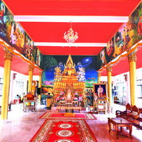 | Wat Phuttha Mongkhol, Yala | Location: On Local Road no.410, in Mu 1, Tambon Aiyoeweng, Amphoe Betong, Yala Location of murals: In the Bot (the main temple). Stories: The Buddha’s story. There are flags with paintings of the Buddhas for each day of the week hanging around the hall. | | | |
