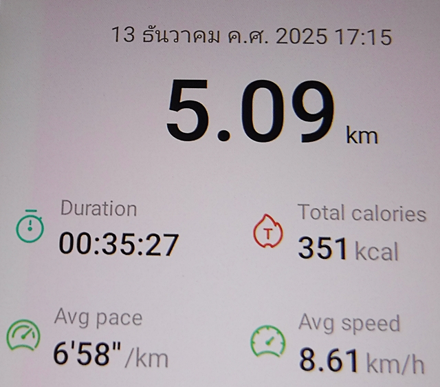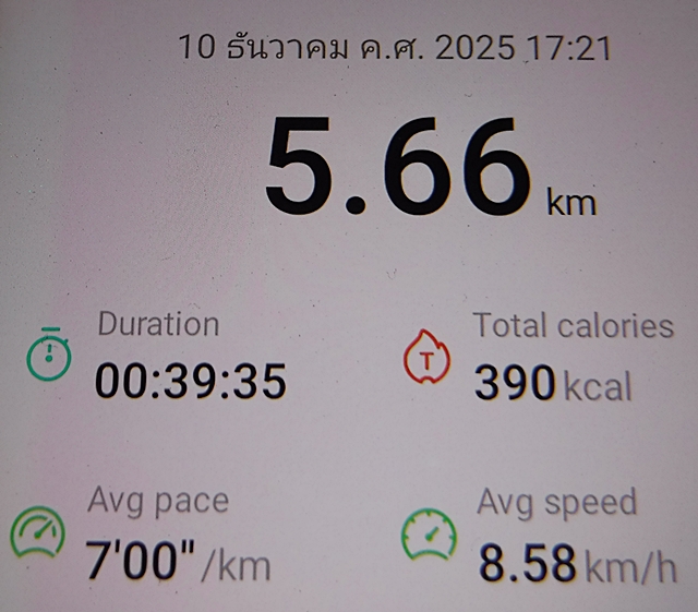 - วิ่งข้างบ้าน 9,10,11,13,14,15 ธ.ค. 2568