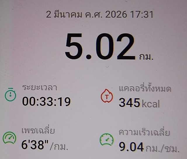 - วิ่งข้างบ้าน 1,2,7 มี.ค. 2569