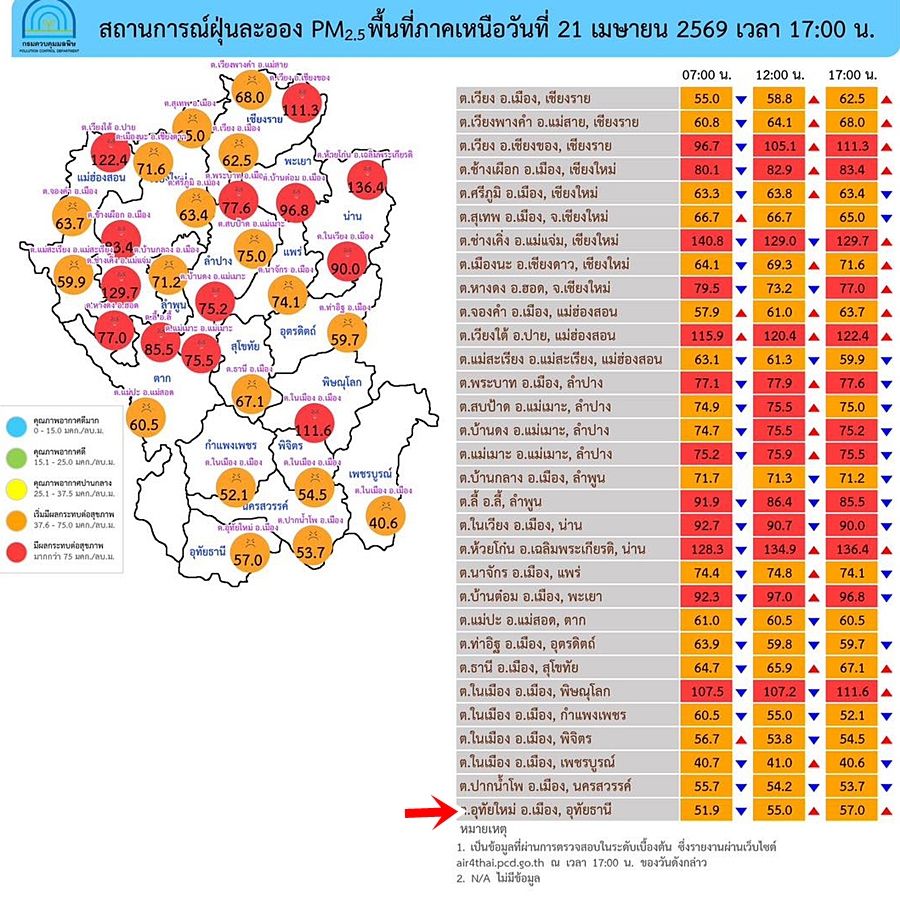 ตั้งแต่ 1 เม.ย.-19 เม.ย. ภาคเหนือ ค่าฝุ่นpm2.5เกินค่ามาตรฐาน(37.5 มคก./ลบ.ม.)