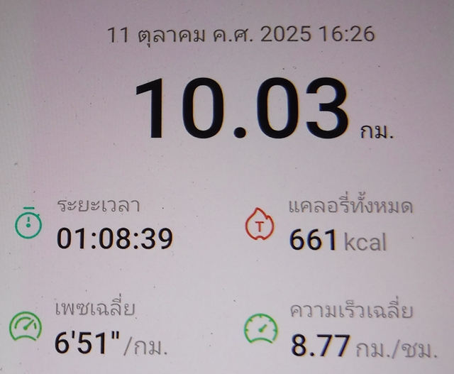 วิ่งข้างบ้าน 8,9,11,12,13,14 ต.ค. 2568