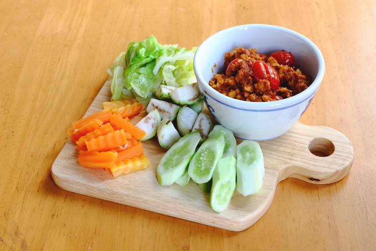 1. ผักต่างๆ ตามใจชอบ (แครอท แตงกวา มะเขือเปราะ ฯลฯ)