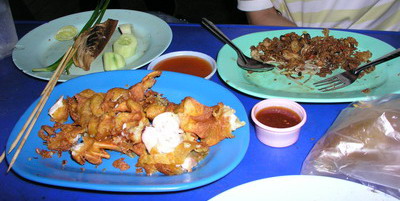 ขออนุญาตเล่าเรื่องแทนนะคะเนื่องจาก คุณ pongto ขอร้องแกมบังคับให้มาเล่าเรื่องไปกระบี่ค่ะ เราไปเที่ยวกระบี่ช่วงวันที่ 21-26 มีนาคมค่ะ ออกจากกรุงเทพเครื่อง delay นิดหน่อยประมาณ 50 นาที เลยมีเวลาเดินดูนั่นนี่ ถึงกระบี่เกือบ 2 ทุ่มครึ่ง นั่งลิมูซีนไปที่พักก่อนดีกว่าคืนนี้ตั้งใจพักที่กระบี่เพราะคิดว่าไหนๆก็ขึ้นชื่อว่ามากระบี่ทั้งทีก็ขอให้ได้สัมผัสกลิ่นอายของเมืองนี้ให้ได้เต็มที่ซะหน่อย แล้วจะเอารูปโรงแรมมาให้ดูทีหลัง หิวม๊ากค่ะ ระหว่างทางเราสังเกตเห็นเงาตะคุ่มๆอยู่ข้างทางพอหันไปก็เจอเรือลำนี้จอดอยู่เดินไปหาอะไรกินที่โต้รุ่งท่าเจ้าฟ้า อาหารที่นี่ส่วนมากจะเป็นพวกผัดไทกับหอยทอดซะเป็นส่วนใหญ่ นี่คือมื้อแรก ค่ะ อาหารที่ชอบมากสุดของมื้อนี้คือ ไก่สะเต๊ กับไก่มะขามค่ะตอนที่ถ่ายรูปหมดไปแล้วด้วยความเร็วสูงค่ะตื่นแต่เช้าวันนี้มีนัดค่ะ ก่อนถึงเวลานัด ขอเดินเล่นซักหน่อย เรือยอร์ชลำเดิมยังจอดอยู่ที่เดิมพระอาทิตย์ขึ้นที่ริมแม่น้ำกระบี่สวยดีค่ะที่ท่าเรือมีเรือจอดอยู่หลายลำ เป็นเรือไปเกาะพี พีค่ะ เห็นเขาขนาบน้ำด้วยล่ะนี่มื้อเช้าของเราค่ะไปตามคำแนะนำจากหนังสือนายรอบรู้ค่ะและแล้วก็ได้เวลาเดินทาง เราจะไปพายคะยัคที่เกาะห้องกันค่ะ ไปกับ Mr. Kayak จองที่งานไทยเที่ยวไทย ที่ศูนย์สิริกิตค่ะวันนี้ท้องฟ้าครึ้มๆ เหมือนฝนจะตก แวะที่เกาะผักเบี้ยกันก่อนค่ะแล้วก็เกาะดิงดังมีสาวน้อยโล้ชิงช้าอยู่ด้วย ที่นี้เราแวะ snorkeling กันค่ะแล้วก็มาถึงเกาะห้อง กินเพิ่มพลังกันก่อนผึ่งพุงอีกนิดแล้วก็ออกเดินทางค่ะ นี่จะเข้าไปใน lagoon แล้วค่ะ สวยมาก อากาศเย็นสบายไม่มีแดดเลยแล้วนี่ก็เพื่อนร่วม trip กับเราเค้าเป็นวิศวกรกรมาจาก Ireland tripของเรามีลูกทัวร์ทั้งหมด 4 คนค่ะไกด์เค้าเลยมีเวลาดูแลเป็นอย่างดีค่ะ ขอบคุณนะคะนี่ไกด์ของเราค่ะพอพายเรือรอบเกาะห้อง แล้วเราก็ไป ที่อ่าวท่าเลนต่อ ที่นี่เป็นป่าโกงกางร่มรื่นสวยงามไปอีกแบบค่ะมัวแต่ถ่ายรูป เค้าไปกันโน้นแล้วค่ะ รอด้วย รอด้วยและแล้วฝนก็ตกหนักทันทีที่ขึ้นรถ พอมาถึงอ่าวนาง น้ำก็เจิ่ง แบบที่เห็นเย็นนี้ฝนยังคงตกไม่หยุดหย่อนเรากินที่ร้านใกล้ๆ โรงแรม เป็นร้านอาหารไทย ที่ขึ้นชื่อรู้สึกจะเป็นน้ำพริกกุ้งเสียบแต่ไม่ได้สั่งค่ะ สั่งน้ำพริกกุ้งสดแทนค่ะ รู้สึกจะเค็มไปหน่อยนะคะอิ่มแล้วค่อยยังชั่วเลยถ่ายรูปโรงแรมมาฝากค่ะ ที่นี่เป็นโรงแรมเล็กๆ น่ารักดีค่ะ ห้องสะอาด ราคาไม่แพง อยู่ริมแม่น้ำกระบี่ได้สัมผัสกลิ่นอายของเมืองนี้ตามที่ตั้งใจไว้เลยค่ะและแล้วคืนนี้ก็นอนหลับฝันดี ติดตามตอนต่อ