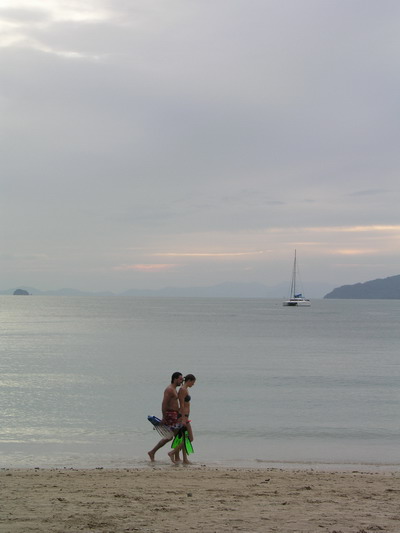 เช้านี้อากาศสดใส ไปดูพระอาทิตย์ขึ้นกันหน่อยนะคะแหมสดชื่นจัง วันนี้ท้องฟ้าสดใสไม่มีฝนตกแล้ว นี่ถ่ายตอนกำลังกินอาหารเช้าค่ะรูปนี้ที่หน้าโรงแรมตอนรอไปทัวร์ 4 เกาะ ซึ่งเป็นโปรแกรมที่รวมอยู่ใน package ค่ะหน้าโรงแรมอีกรูปท้องฟ้าสดใสขนาดนี้นักท่องเที่ยวหลายคนก็พร้อมออกไปทำกิจกรรมต่างๆแล้วค่ะวันนี้ท้องฟ้าใสสุด สุดค่ะเริ่มต้นที่ทะเลแหวกก่อนเลยค่ะเกาะไก่เกาะสี่เป็นที่แวะ snorkeling ที่นี่น้ำใส ปลาเยอะ หอยเม่นก็เยอะด้วยค่ะเกาะปอดะบรรยากาศอาหารกลางวันค่ะนี่ก็อาหารกลางวันอีกบรรยากาศค่ะเกาะปอดะ น้ำใส ทรายขาว สวยมากค่ะBye-Bye เกาะปอดะ แล้วจะกลับมาหาใหม่นะจ๊ะถ้ำพระนาง และ หาดพระนางอันนี้เป็นเรือ 7-11 ขายของอยู่ที่หาดพระนางจ๊ะ มีขายทุกอย่างตั้งแต่ น้ำอัดลม ของมึนเมา ผัดไท จนกระทั่งกล้วยหอมยังมีเลยนะจ๊ะวันนี้คึกคักมีเรืออย่างนี้ตังหลายลำกลับที่พักที่ไร่เลย์โดยสวัสดิภาพค่ะหิวอีกแล้วเดินไปกินที่ร้านเดิมที่กินเมื่อวานฝนตกอีกแล้วค่ะคืนนี้เรามีนัดดินเนอร์ค่ะดินเนอร์มื้อนี้รวมใน package ค่ะ beforeและ after เป็นอาหารไทยมื้อที่อร่อยที่สุดค่ะ อิ่มมาก ลุกแทบไม่ไหว ขอตัวกลับห้องพักไปนอนก่อนล่ะค่ะแต่เดี๋ยวก่อน ทันทีที่จะจากไป คุณพี่บริกร ก็รีบเดินมาขวางไว้ คุณพี่ยังไปไหนไม่ได้ทั้งนั้น อารายกันเนี่ยคนจะไปนอนก็ไม่ให้ไป คุณบริกรกล่าวต่อไปว่า ภาระของคุณพี่ยังไม่หมดครับ ต้องมีผลไม้อีก ต้องกินจานนี้อีก เหรอ เฮ้อ แทบตาย