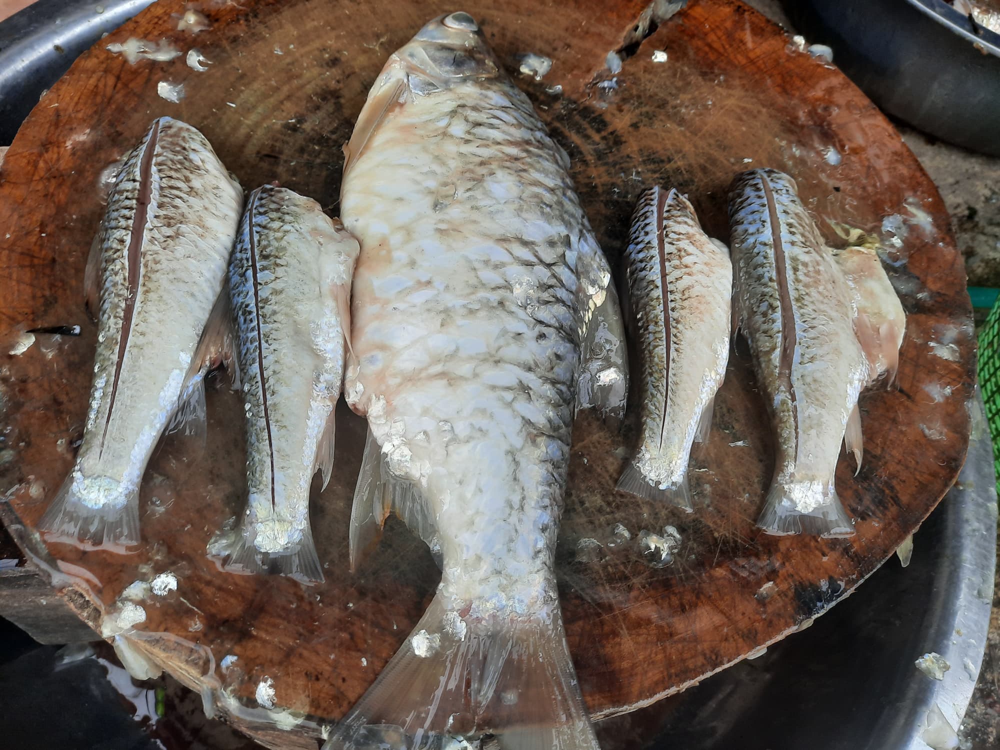 - นําปลาไปล้างเกลือออกด้วยน้ําเปล่าประมาณ 3 รอบ