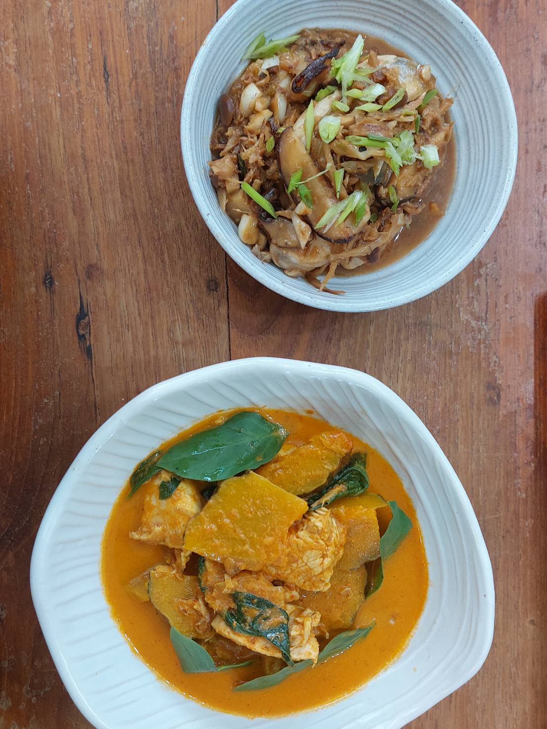 แกงไก่ใส่ฟักทอง และ ปลาผัดขิงใส่เต้าเจี้ยวโฮมเมด เพื่อเพิ่มความอูมามิ(เต้าเจี้ยวที่ทางร้านหมักเอง อร่อยมากกก)