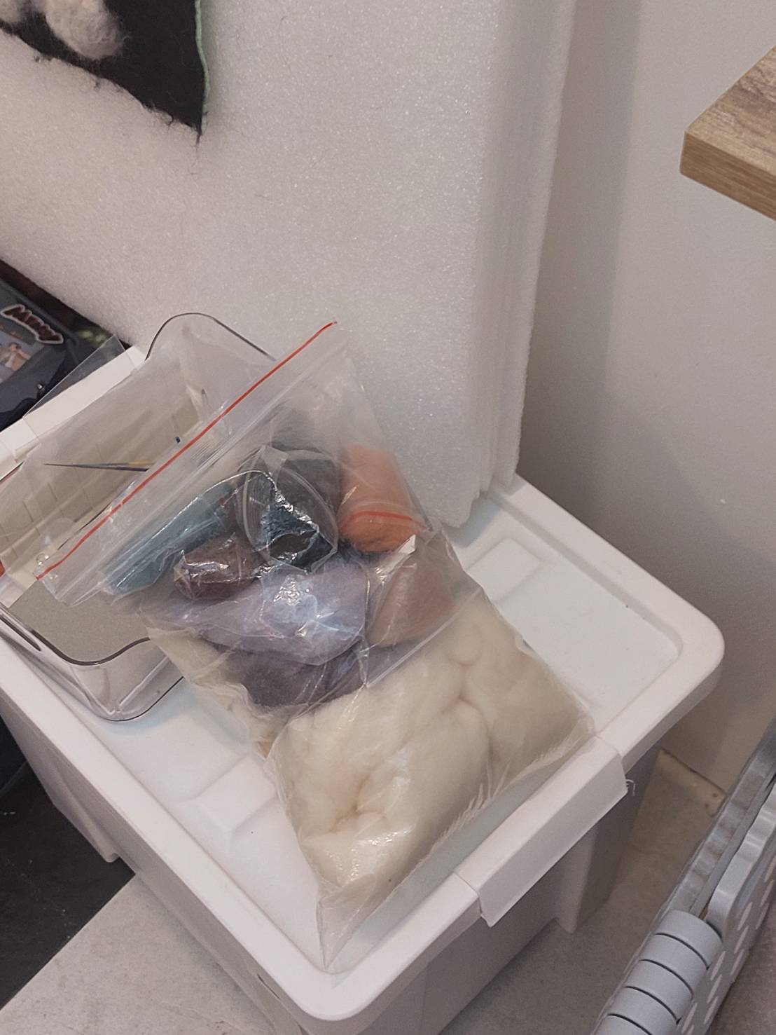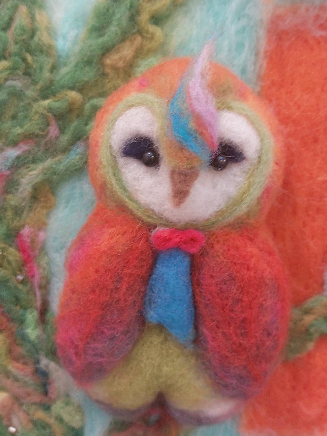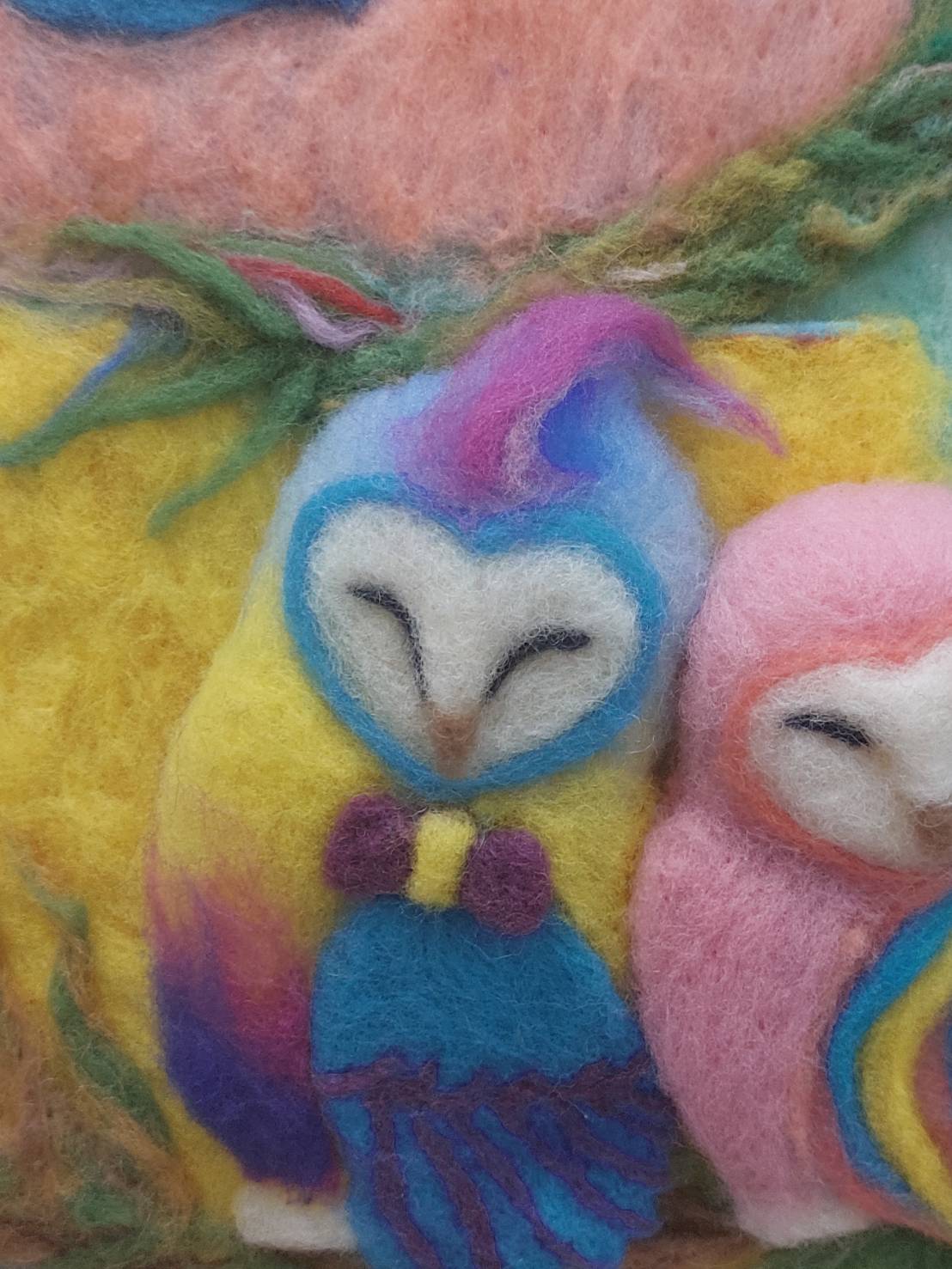 ชิ้นงานแนวNeedle-Felted Wool (ภาพศิลปะจากขนแกะ) ของจริงคือมีเอกลักษณ์มากๆ เป็นลักษณะเหมือนใช้เข็มปลายมีเงี่ยงเล็กๆค่อยๆ จิ้มแทงลงไปในขนแกะ จนเส้นใยเกี่ยวกันและก็เกาะตัวด้วย
